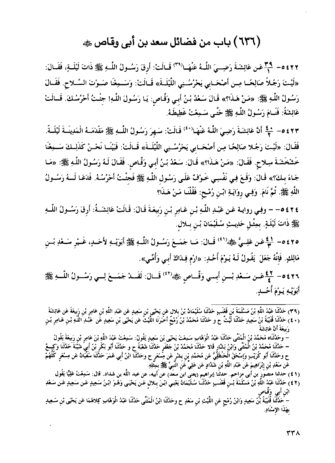 5426 - عن سعد بن أبي وقاص رضي الله عنه قال: لقد جمع لي رسول الله صلى الله عليه وسلم أبويه يوم أحد.