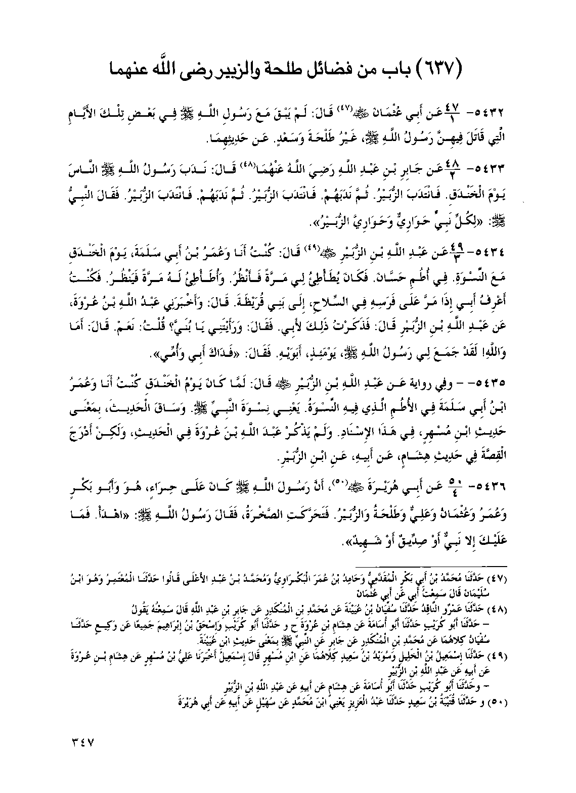 (637) باب من فضائل طلحة والزبير رضي الله عنهما