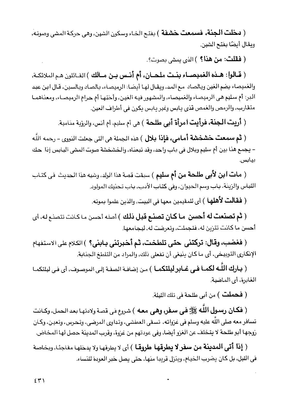 (أريت الجنة فرأيت امرأة أبي طلحة) هي أم سليم، أم أنس، والرؤية منامية.