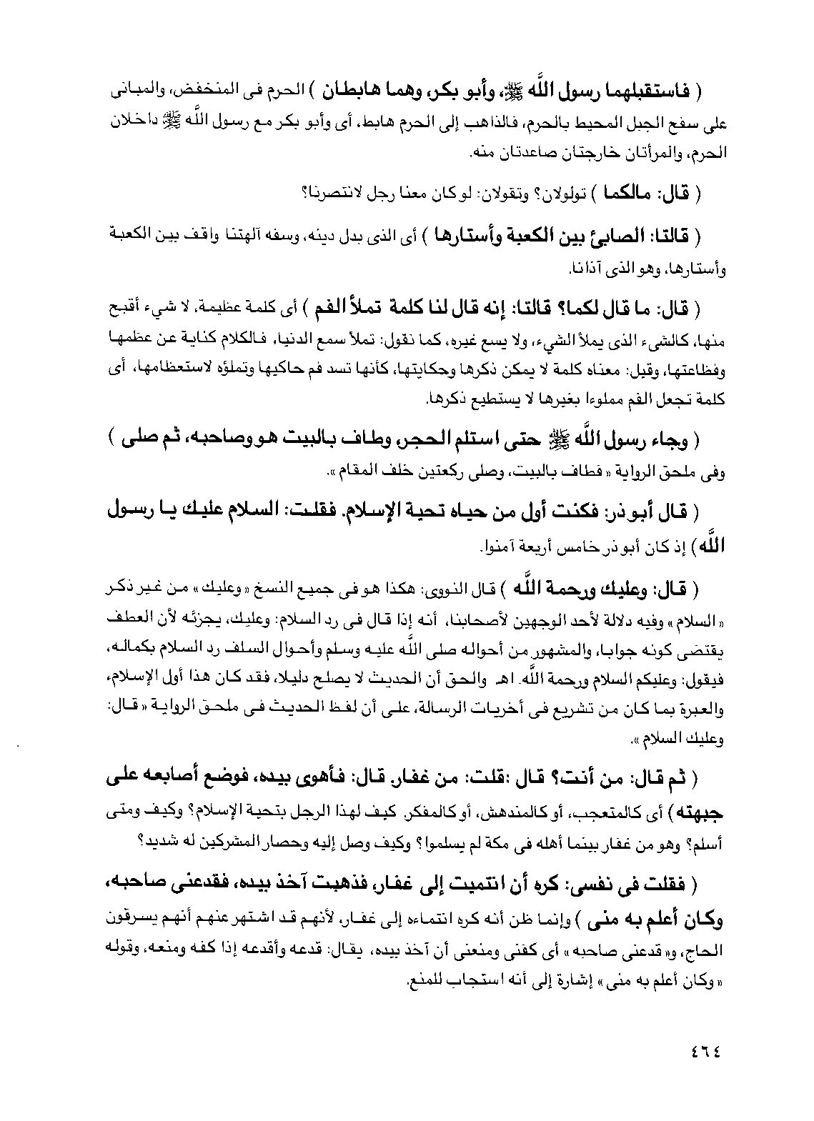 (قال أبو ذر: فكنت أول من حياه تحية الإسلام. فقلت: السلام عليك يا رسول الله) إذ كان أبو ذر خامس أربعة آمنوا.