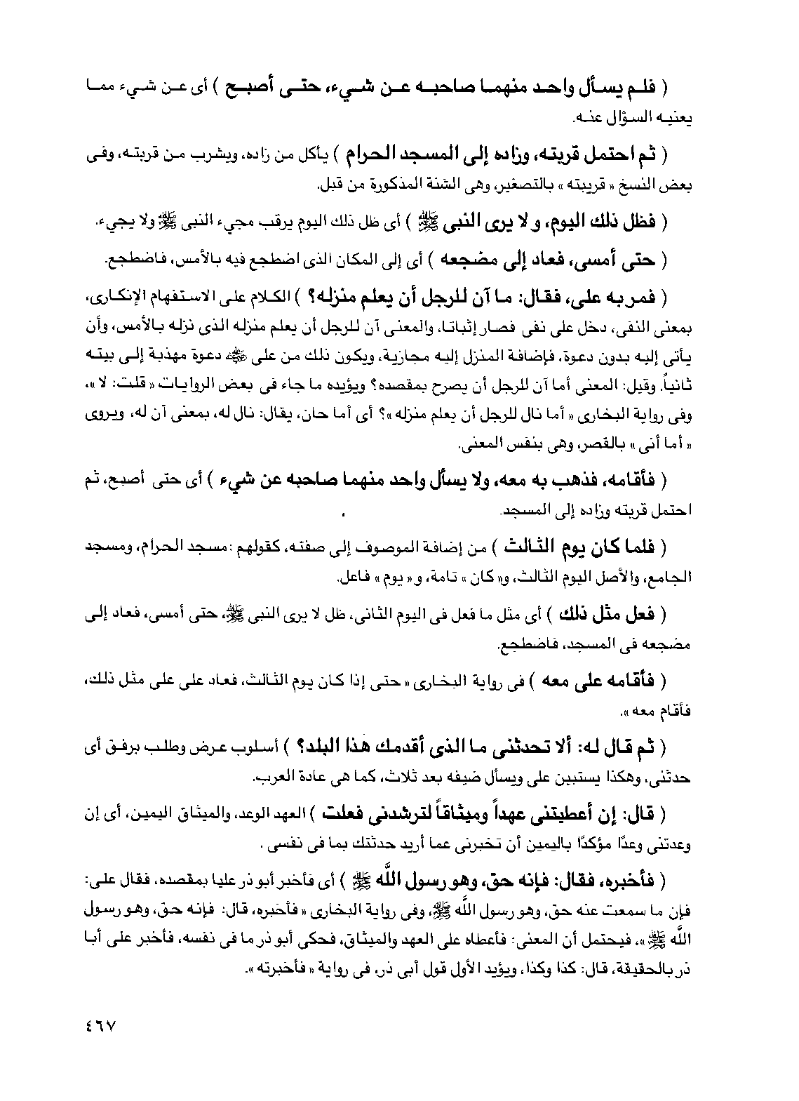 (ثم احتمل قربته، وزاده إلى المسجد الحرام) يأكل من زاده ويشرب من قربته، وفي بعض النسخ "قريبته" بالتصغير وهي الشنة المذكورة من قبل.