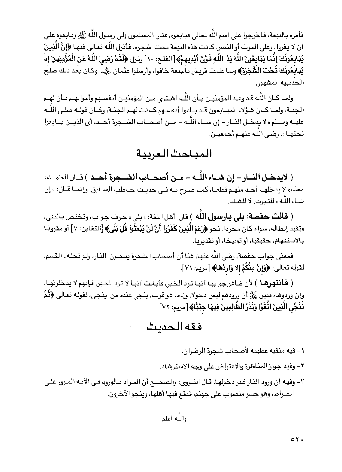 (لا يدخل النار -إن شاء الله- من أصحاب الشجرة أحد) قال العلماء: معناه لا يدخلها أحد منهم قطعا، كما صرح به في حديث حاطب السابق، وإنما قال: "إن شاء الله" للتبرك، لا للشك.