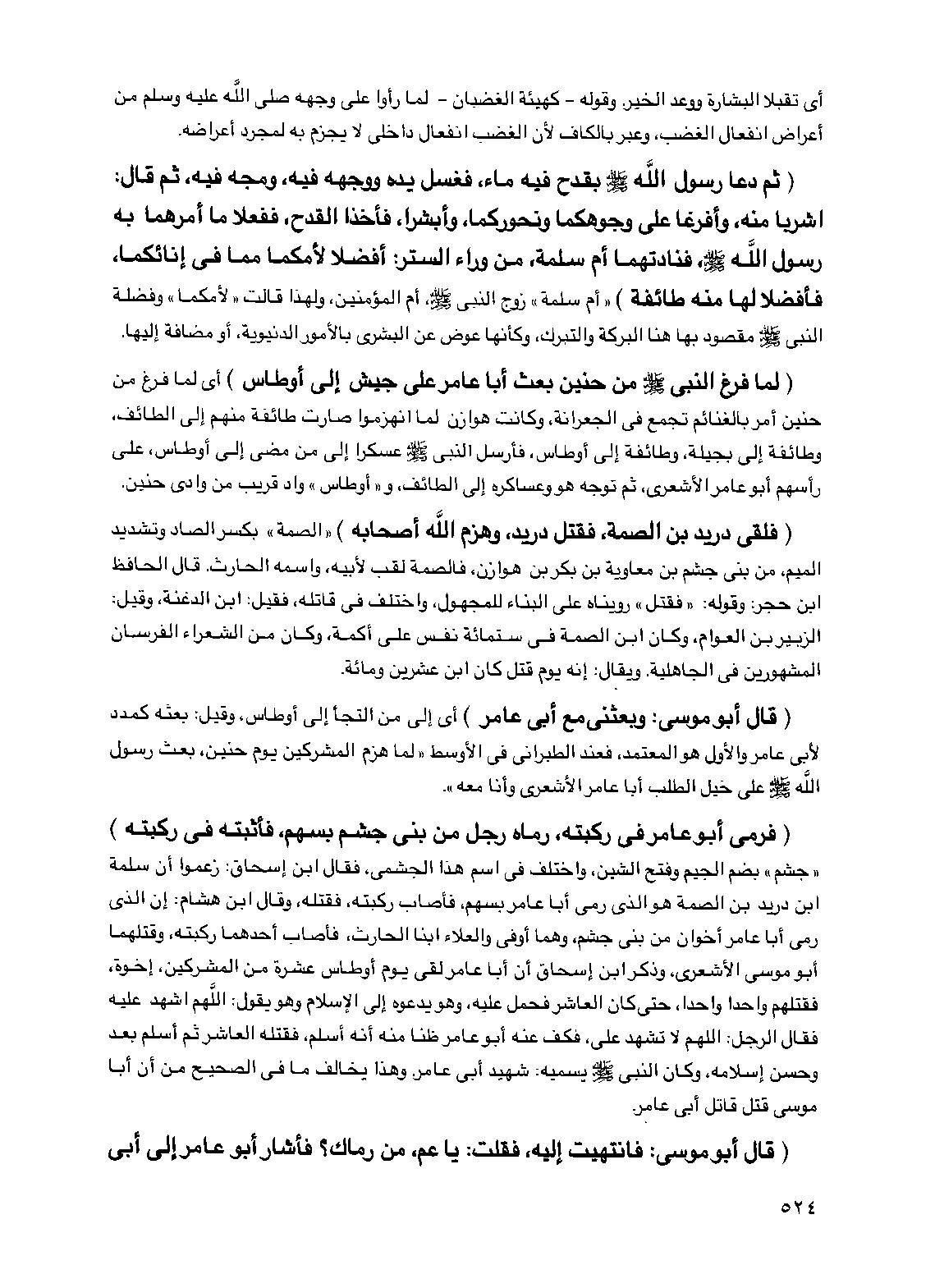 (لما فرغ النبي صلى الله عليه وسلم من حنين بعث أبا عامر على جيش إلى أوطاس) أي لما فرغ من حنين أمر بالغنائم تجمع في الجعرانة، وكانت هوازن لما انهزموا صارت طائفة منهم إلى الطائف، وطائفة إلى بجيلة، وطائفة إلى أوطاس، فأرسل النبي صلى الله عليه وسلم عسكرا إلى من مضى إلى أوطاس، على رأسهم أبو عامر الأشعري، ثم توجه هو وعساكره إلى الطائف، و"أوطاس" واد قريب من وادي حنين.