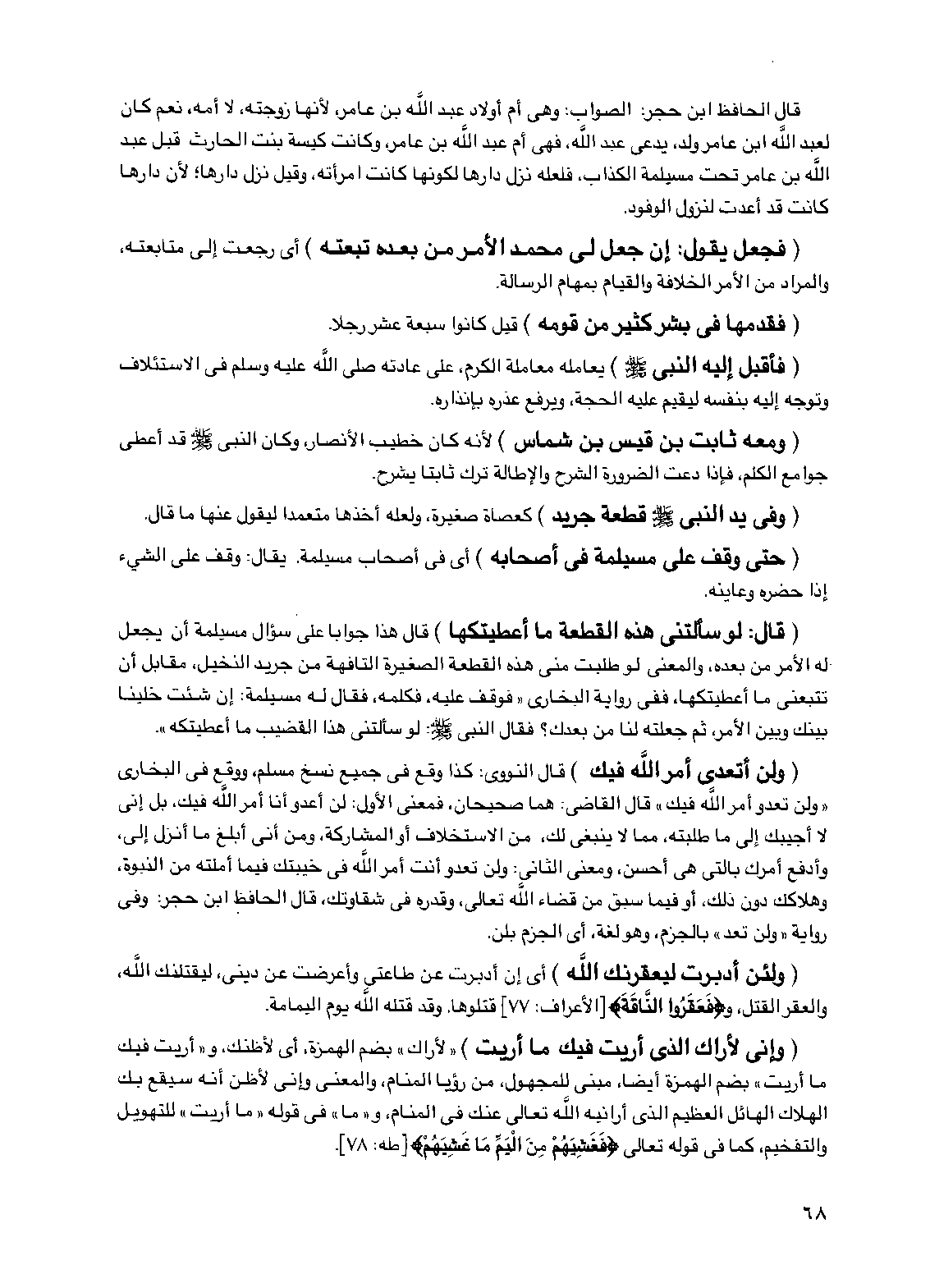(قال: لو سألتني هذه القطعة ما أعطيتكها) قال هذا جوابا على سؤال مسيلمة أن يجعل له الأمر من بعده، والمعنى لو طلبت مني هذه القطعة الصغيرة التافهة من جريد النخيل، مقابل أن تتبعني ما أعطيتكها، ففي رواية البخاري "فوقف عليه، فكلمه، فقال له مسيلمة: إن شئت خلينا بينك وبين الأمر، ثم جعلته لنا من بعدك؟ فقال النبي صلى الله عليه وسلم: لو سألتني هذا القضيب ما أعطيتكه".