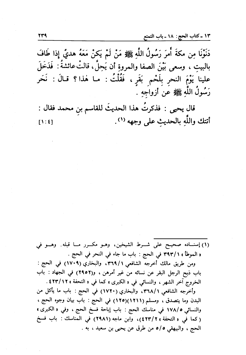قَالَ يَحْيَى: فَذَكَرْتُ هَذَا الْحَدِيثِ لِلْقَاسِمِ بْنِ مُحَمَّدٍ فَقَالَ: أَتَتْكَ وَاللَّهِ بالحديث على وجهه 1. [1:4]