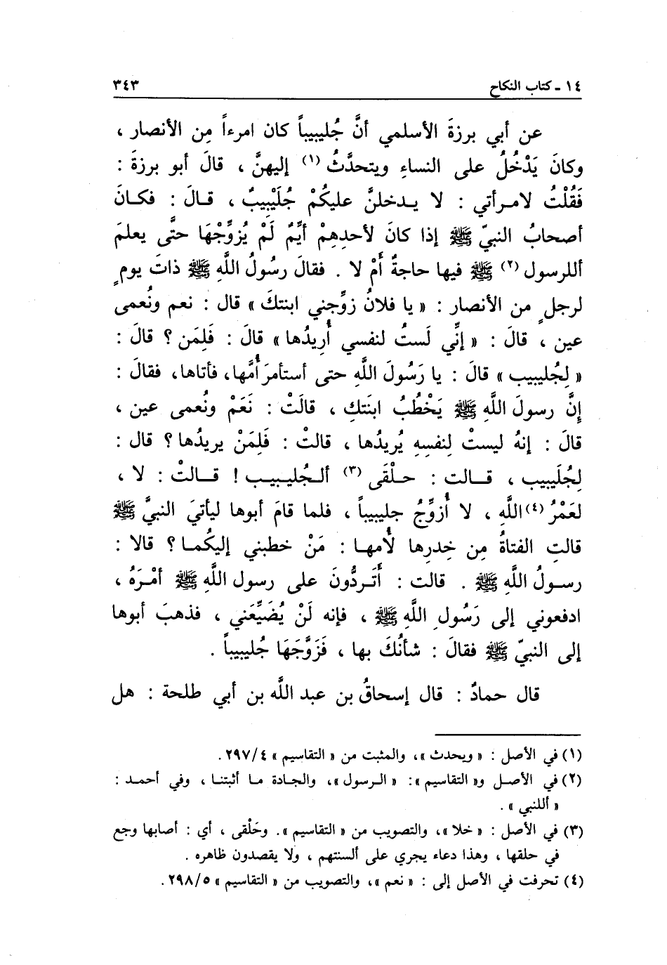 قَالَ حَمَّادٌ: قَالَ إِسْحَاقَ بْنِ عَبْدِ اللَّهِ بْنِ أَبِي طَلْحَةَ: هل
