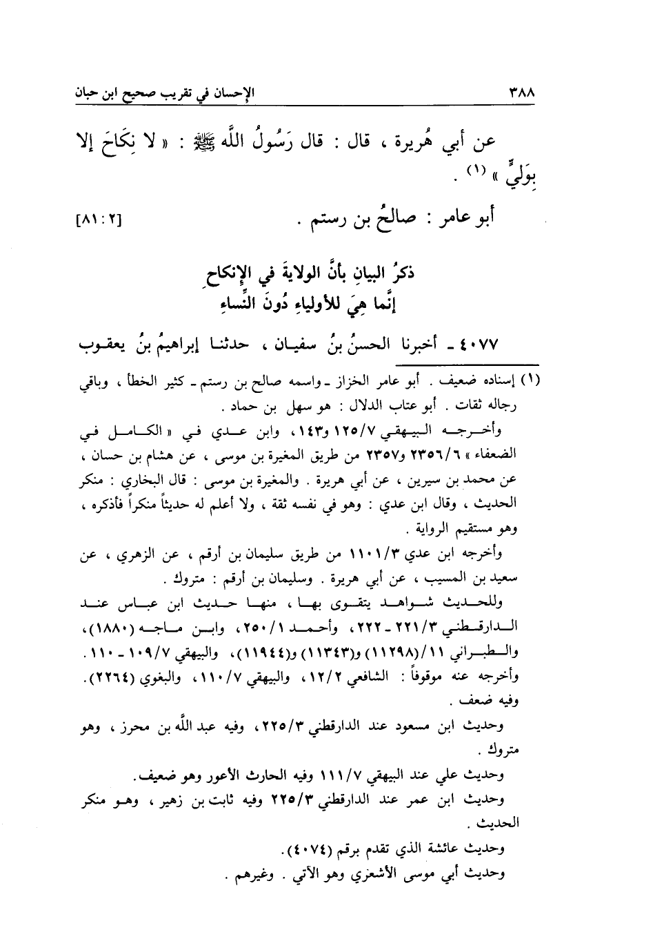 4077 - أَخْبَرَنَا الْحَسَنُ بْنُ سُفْيَانَ، حَدَّثَنَا إِبْرَاهِيمُ بْنُ يعقوبذكر الْبَيَانِ بِأَنَّ الْوَلَايَةَ فِي الْإِنْكَاحِ إِنَّمَا هِيَ لِلْأَوْلِيَاءِ دُونَ النِّسَاءِ