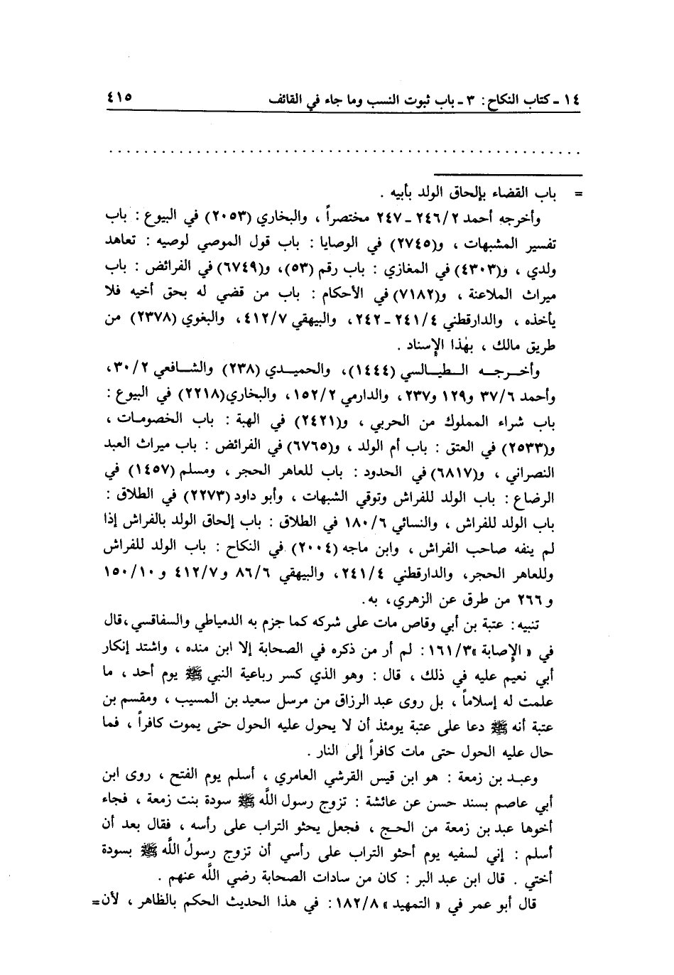 وأخرجه الطيالسي 1444، والحميدي238، والشافعي 2/30، وأحمد 6/37و 129 و 237، والدارمي 2/152، والبخاري 2218 في البيوع: باب شراء المملوك من الحربي، و 2421 في الهبة: باب الخصومات، و 2533 في العتق: باب أم الولد، و6765 في الفرائض: باب ميراث العبد النصراني، و 6817 في الحدود: باب للعاهر الحجر، ومسلم 1457 في الرضاع: باب الولد للفراش، والنسائي 6/180 في الطلاق: باب إلحاق الولد بالفراش إذا لم ينفه صاحب الفراش، وابن ماحه 2004 في النكاح: باب الولد للفراش وللعاهر الحجر، والدارقطني 4/241، والببيهقي 6/86 و 7/412 و 10/150 و 266 من طرق عن الزهري، به.