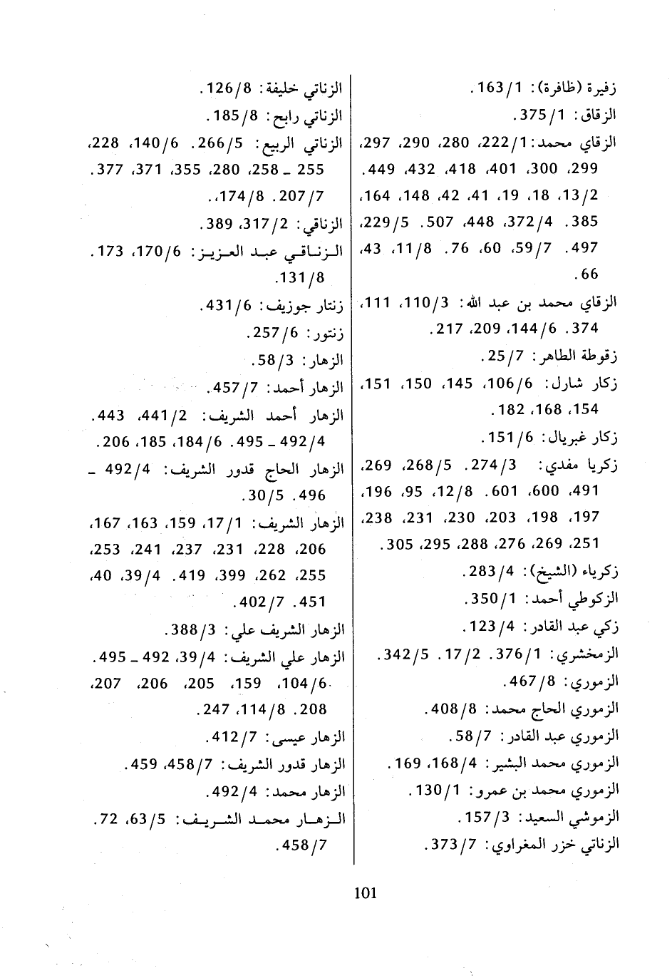 الزناتي الربيع: 5/ 266، 6/ 140، 228، 255 - 258، 280، 355، 371، 377، 7/ 207، 8/ 174،