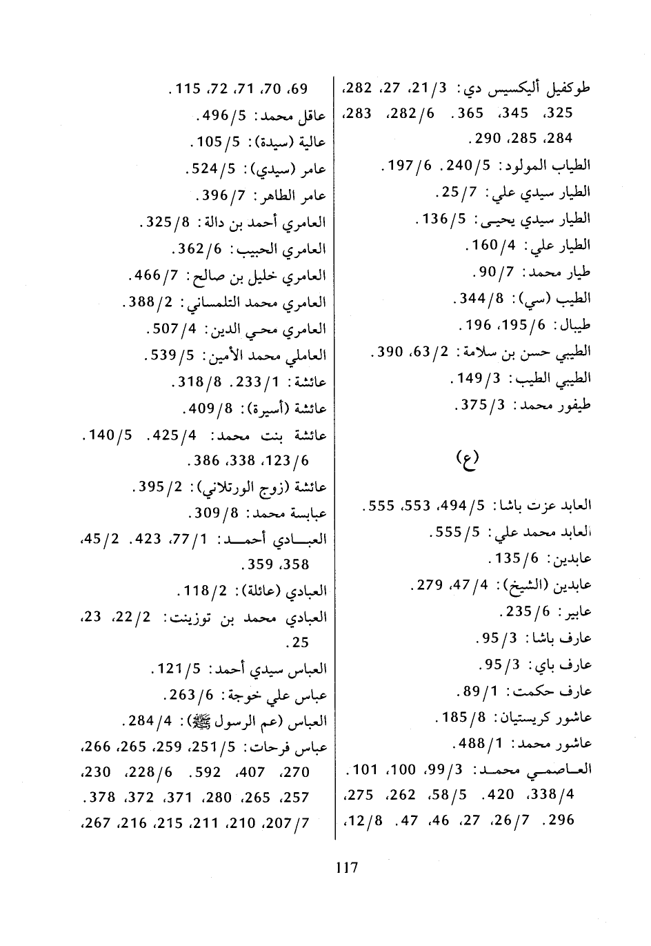 العاصمي محمد: 3/ 99، 100، 101، 4/ 338، 420، 5/ 58، 262، 275، 296، 7/ 26، 27، 46، 47، 8/ 12، 69، 70، 71، 72، 115،
