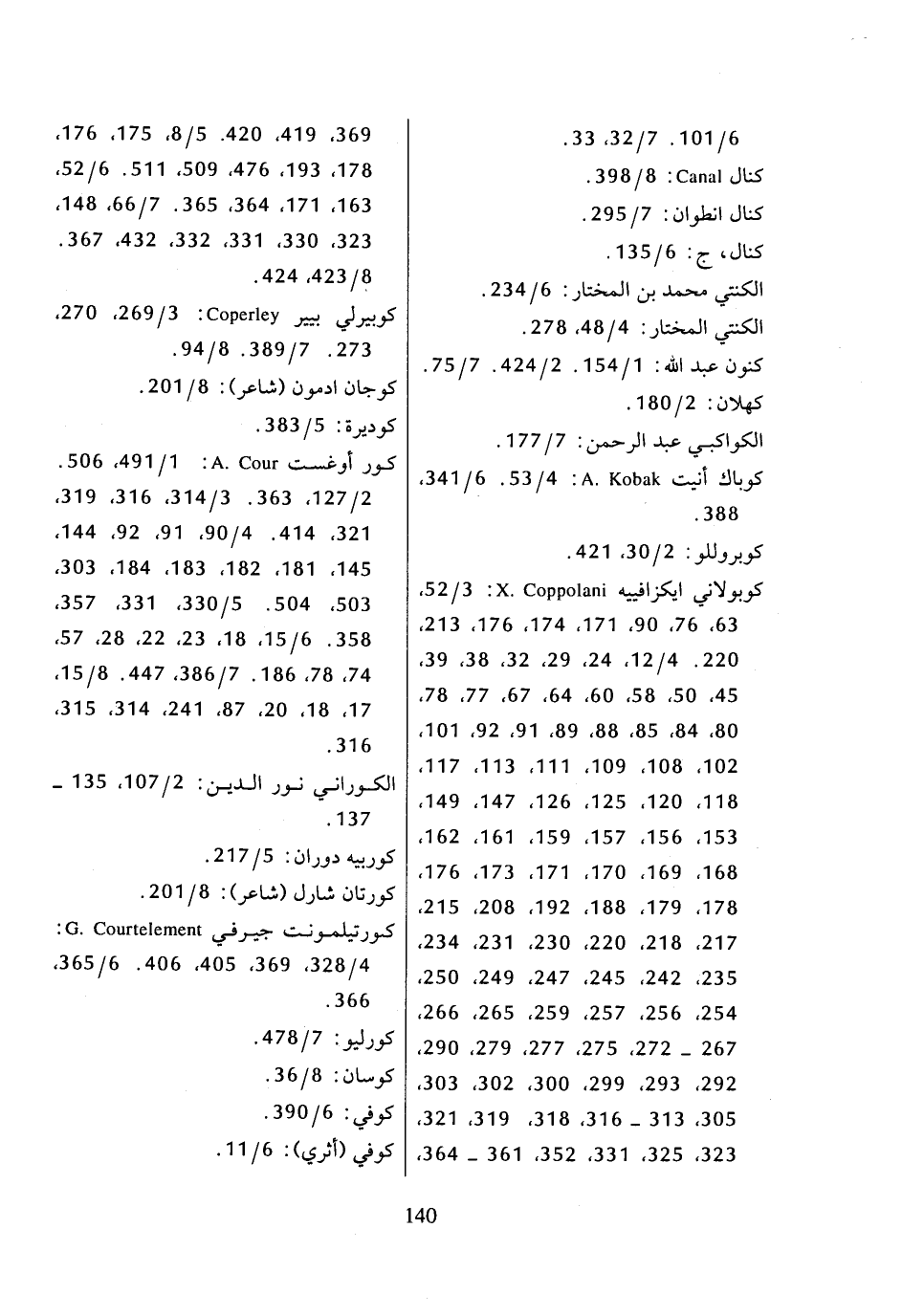 كوبولاني ايكزافييه 52/ 3: X. Coppolani، 63، 76، 90، 171، 174، 176، 213، 220، 4/ 12، 24، 29، 32، 38، 39، 45، 50، 58، 60، 64، 67، 77، 78، 80، 84، 85، 88، 89، 91، 92، 101، 102، 108، 109، 111، 113، 117، 118، 120، 125، 126، 147، 149، 153، 156، 157، 159، 161، 162، 168، 169، 170، 171، 173، 176، 178، 179، 188، 192، 208، 215، 217، 218، 220، 230، 231، 234، 235، 242، 245، 247، 249، 250، 254، 256، 257، 259، 265، 266، 267 - 272، 275، 277، 279، 290، 292، 293، 299، 300، 302، 303، 305، 313 - 316، 318، 319، 321، 323، 325، 331، 352، 361 - 364، 369، 419، 420، 5/ 8، 175، 176، 178، 193، 476، 509، 511، 6/ 52، 163، 171، 364، 365، 7/ 66، 148، 323، 330، 331، 332، 432، 367، 8 / 423، 424،