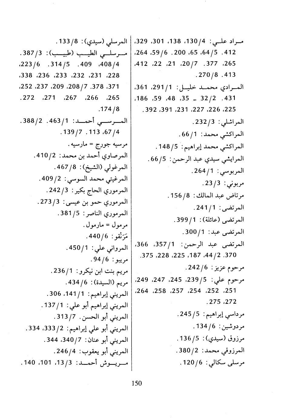 مرسلي الطيب (طبيب): 3/ 387، 4/ 408، 409، 5/ 314، 6/ 223، 228، 231، 232، 233، 236، 338، 371، 378، 7/ 208، 209، 237، 252، 265، 266، 267، 271، 272، 8/ 174،
