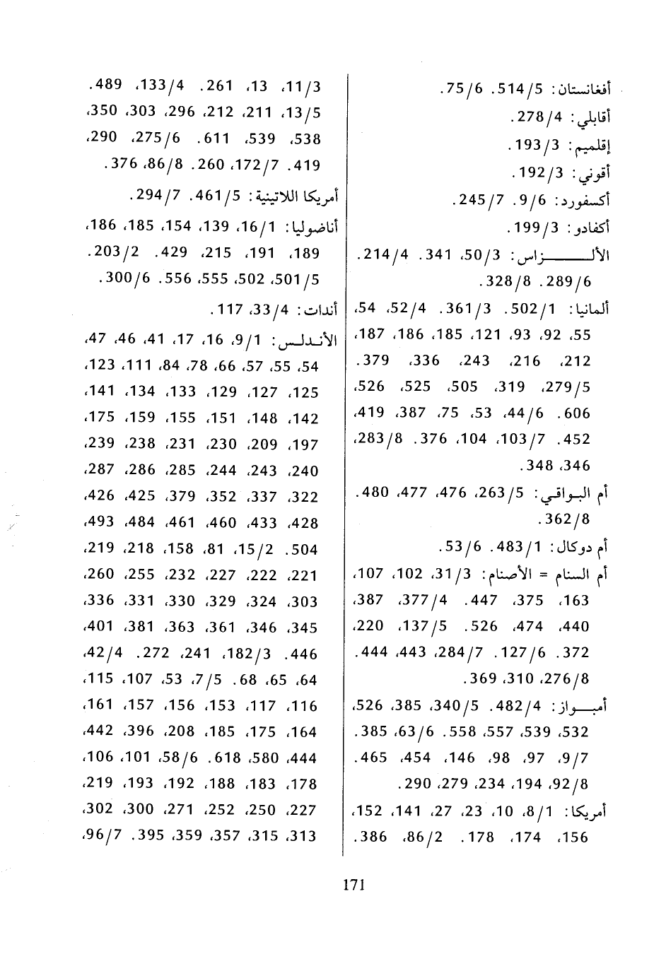 أمريكا: 1/ 8، 10، 23، 27، 141، 152، 156، 174، 178، 2/ 86، 386، 3/ 11، 13، 261، 4/ 133، 489، 5/ 13، 211، 212، 296، 303، 350، 538، 539، 611، 6/ 275، 290، 419، 7/ 172، 260، 8/ 86، 376،