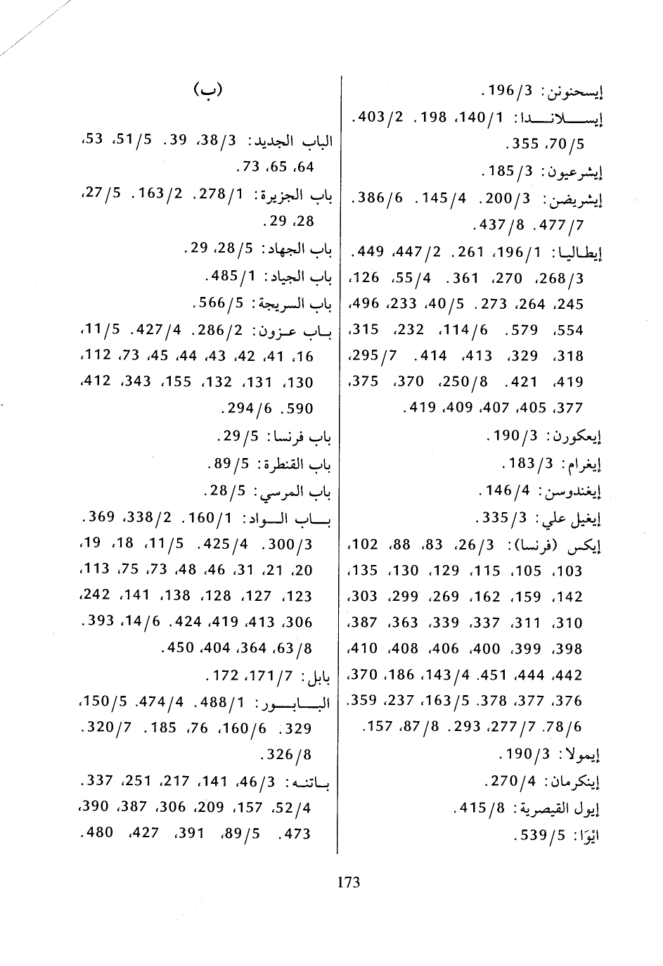 باب الجزيرة: 1/ 278، 2/ 163، 5/ 27، 28، 29،