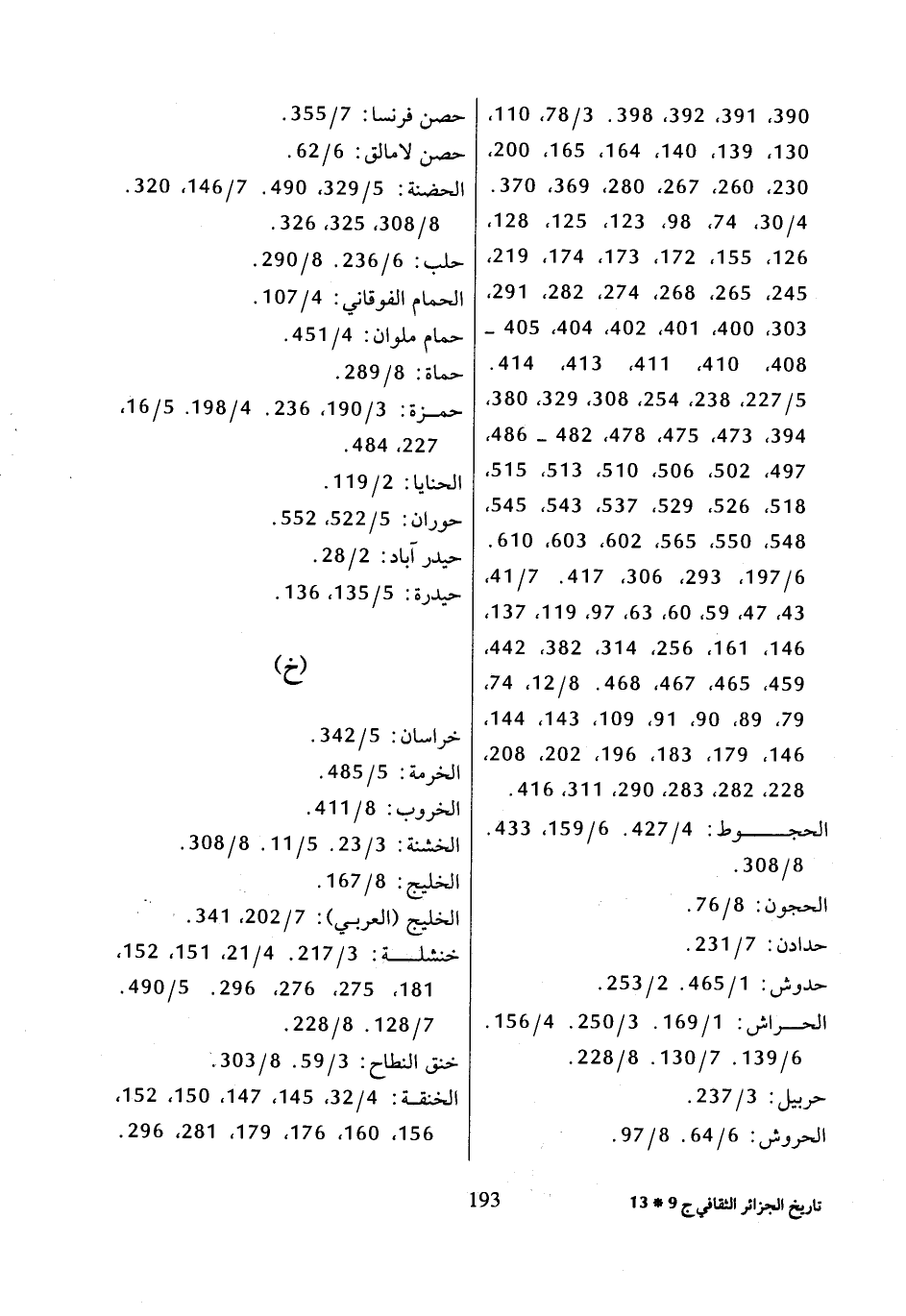 خنشلة: 3/ 217، 4/ 21، 151، 152، 181، 275، 276، 296، 5/ 490، 7/ 128، 8/ 228،