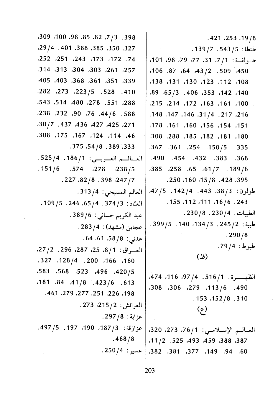 العالم الإسلامي: 1/ 76، 273، 320، 387، 388، 459، 493، 525، 2/ 11، 60، 94، 149، 377، 381، 382، 398، 3/ 7، 82، 85، 98، 100، 309، 327، 350، 385، 388، 401، 4/ 29، 74، 172، 173، 243، 251، 252، 257، 261، 303، 304، 313، 314، 339، 351، 361، 368، 403، 405، 410، 528، 5/ 223، 273، 282، 288، 551، 278، 480، 514، 543، 588، 6/ 44، 76، 90، 232، 238، 271، 425، 427، 436، 437، 7/ 30، 46، 114، 124، 167، 175، 308، 333، 389، 8/ 54، 375،