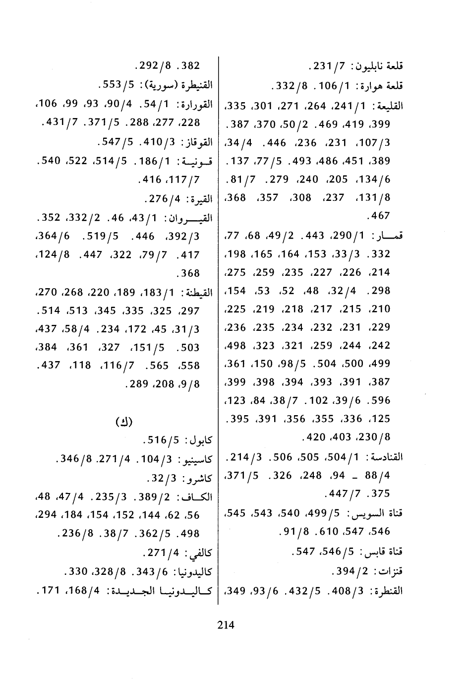 القليعة: 1/ 241، 264، 271، 301، 335، 399، 419، 469، 2/ 50، 370، 387، 3/ 107، 231، 236، 446، 4/ 34، 389، 451، 486، 493، 5/ 77، 137، 6/ 134، 205، 240، 279، 7/ 81، 8/ 131، 237، 308، 357، 368، 467،