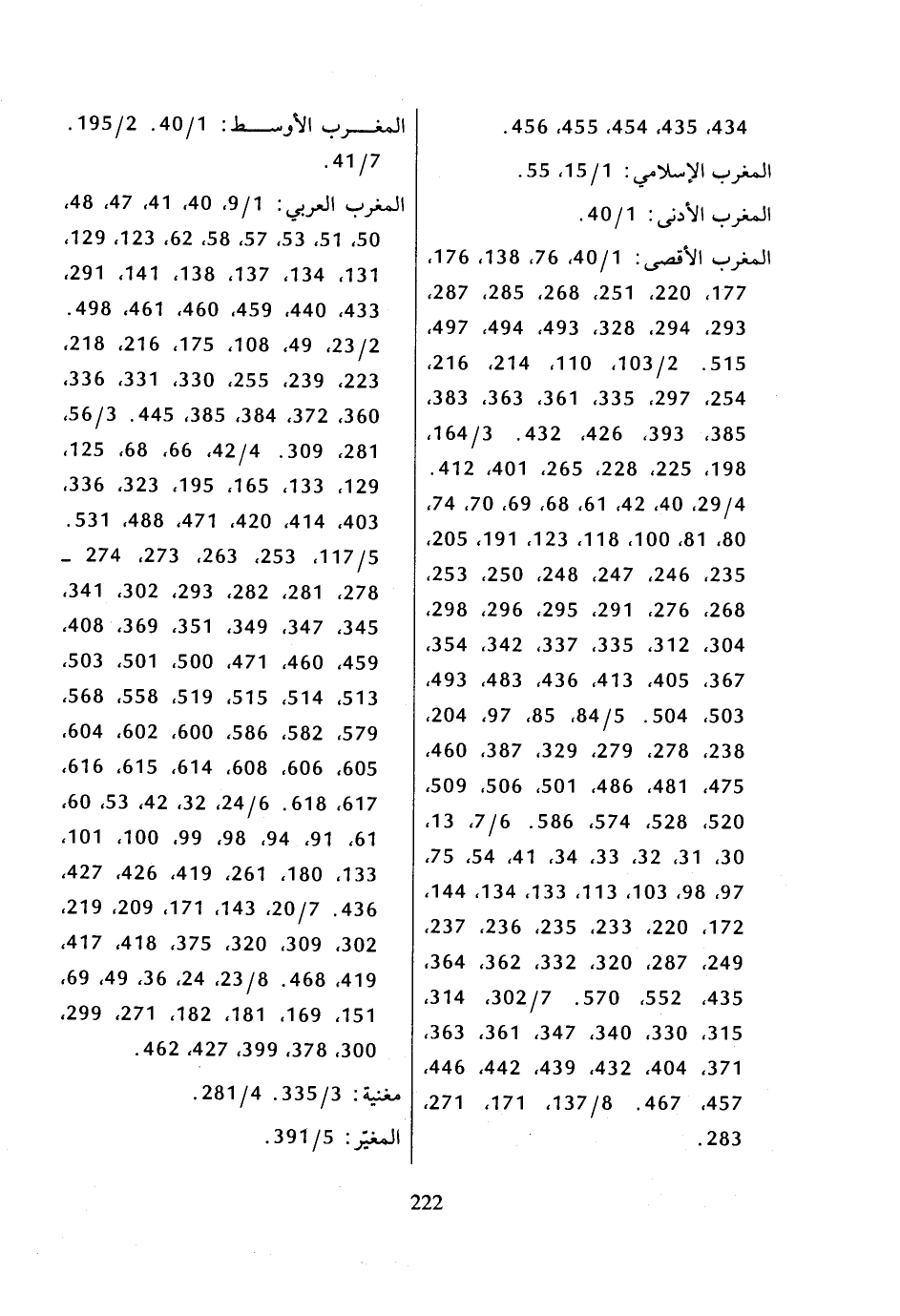 المغرب العربي: 1/ 9، 40، 41، 47، 48، 50، 51، 53، 57، 58، 62، 123، 129، 131، 134، 137، 138، 141، 291، 433، 440، 459، 460، 461، 498، 2/ 23، 49، 108، 175، 216، 218، 223، 239، 255، 330، 331، 336، 360، 372، 384، 385، 445، 3/ 56، 281، 309، 4/ 42، 66، 68، 125، 129، 133، 165، 195، 323، 336، 403، 414، 420 471،، 488 531،، 5/ 117، 253، 263، 273، 274 - 278، 281، 282، 293، 302، 341، 345، 347، 349، 351، 369، 408، 459، 460، 471، 500، 501، 503، 513، 514، 515، 519، 558، 568، 579، 582، 586، 600، 602، 604، 605، 606، 608، 614، 615، 616، 617، 618، 6/ 24، 32، 42، 53، 60، 61، 91، 94، 98، 99، 100، 101، 133، 180، 261، 419، 426، 427، 436، 7/ 20، 143، 171، 209، 219، 302، 309، 320، 375، 418، 417، 419، 468، 8/ 23، 24، 36، 49، 69، 151، 169، 181، 182، 271، 299، 300، 378، 399، 427، 462،