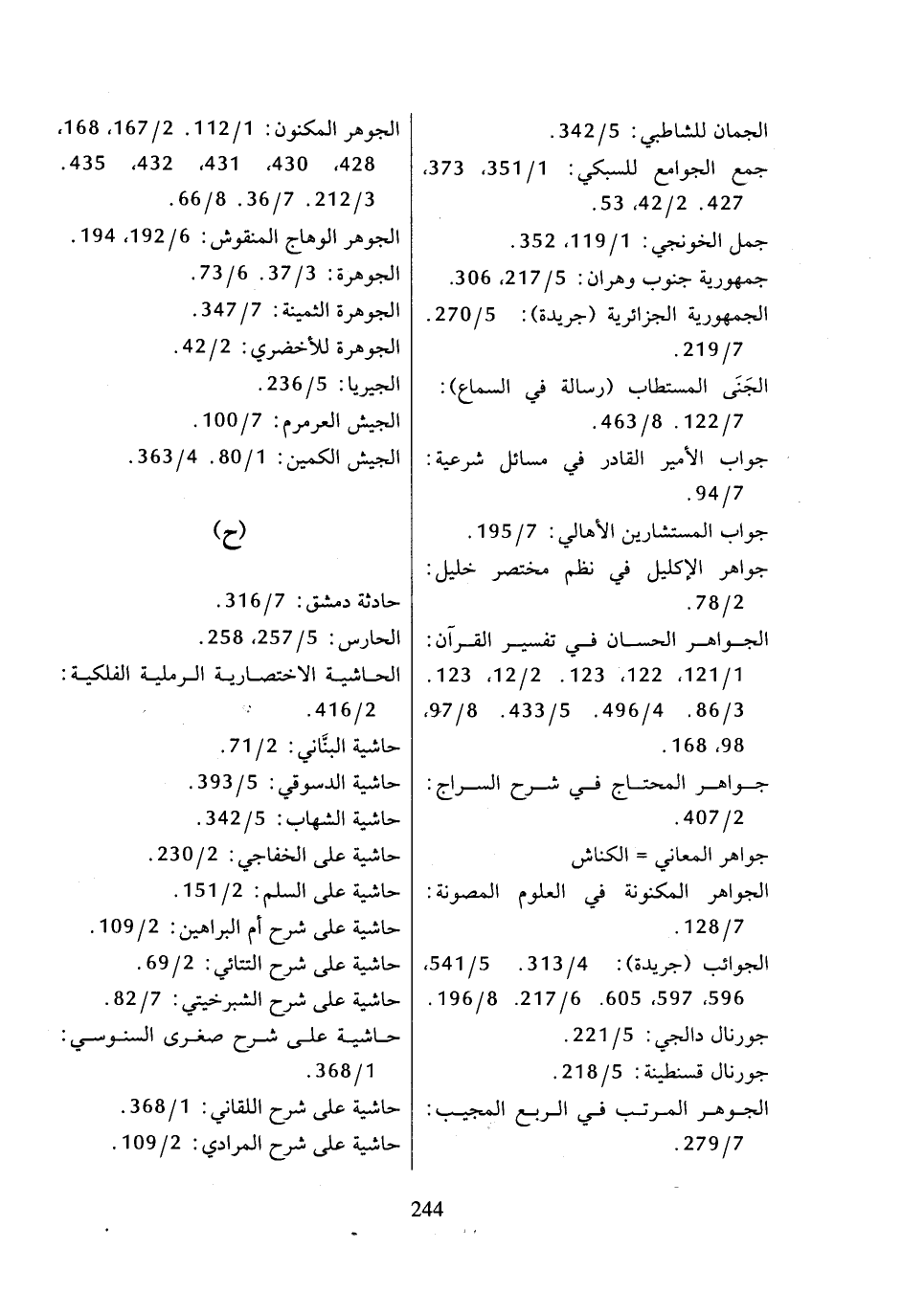 الجوهر المكنون: 1/ 112، 2/ 167، 168، 428، 430، 431، 432، 435، 3/ 212، 7/ 36، 8/ 66،