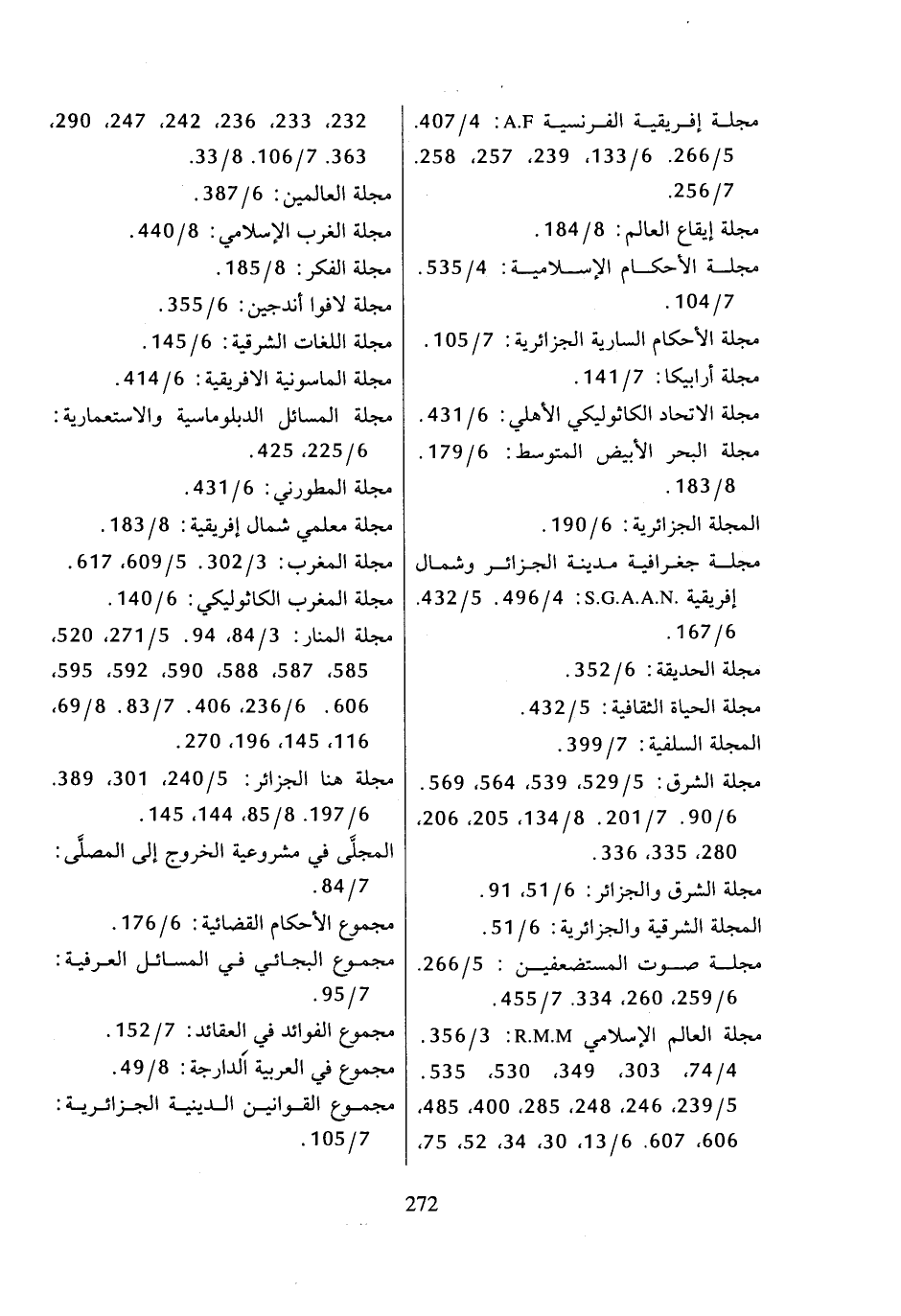 مجلة هنا الجزائر: 5/ 240، 301، 389، 6/ 197، 8/ 85، 144، 145،