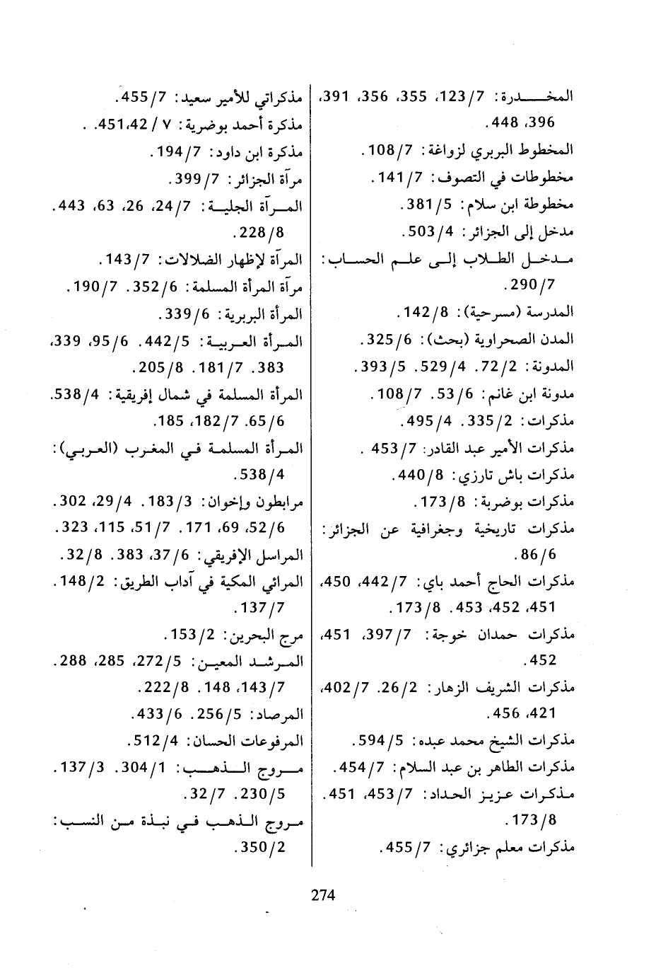 المرأة المسلمة في شمال إفريقية: 4/ 538، 6/ 65، 7/ 182، 185،