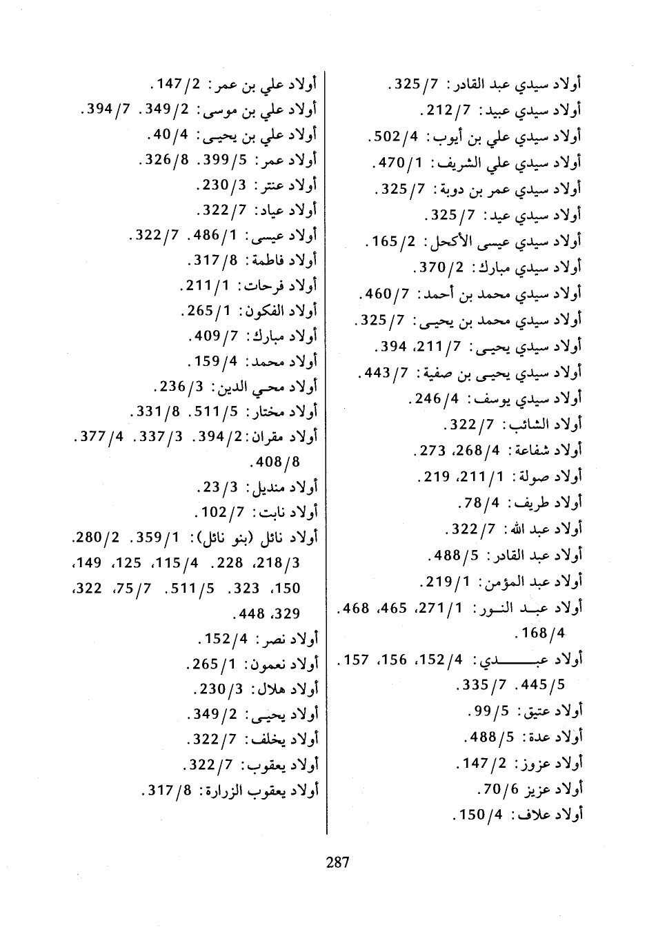 أولاد عبدي: 4/ 152، 156، 157، 5/ 445، 7/ 335،