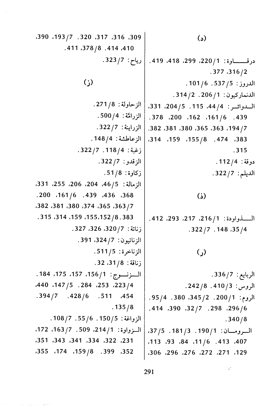 الروم: 1/ 200، 2/ 345، 380، 4/ 95، 6/ 296، 298، 7/ 32، 390، 414، 8/ 340،