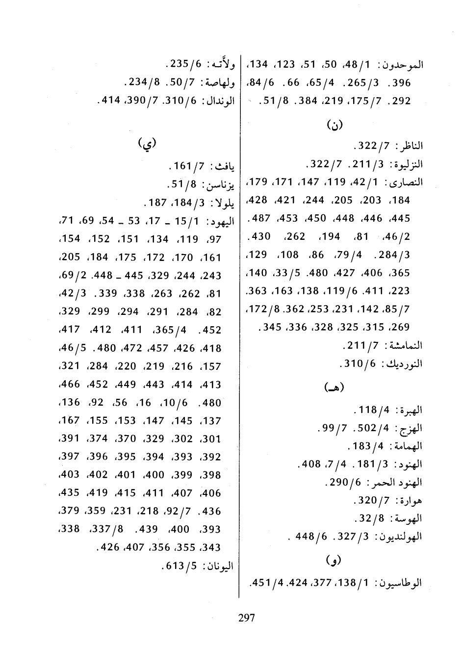 النصارى: 1/ 42، 119، 147، 171، 179، 184، 203، 205، 244، 421، 428، 445، 446، 448، 450، 453، 487، 2/ 46، 81، 194، 262، 430، 3/ 284، 4/ 79، 86، 108، 129، 365، 406، 427، 480، 5/ 33، 140، 223، 411، 6/ 119، 138، 163، 363، 7/ 85، 142، 231، 253، 362، 8/ 172، 269، 315، 325، 328، 336، 345،