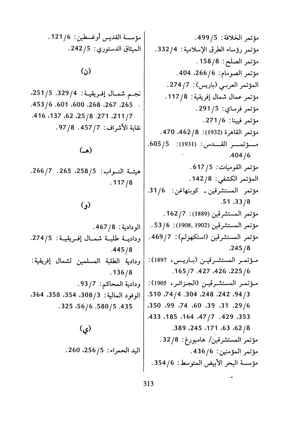 مؤتمر المستشرقين (الجزائر، 1905): 3/ 94، 242، 248، 304، 4/ 74، 510، 6/ 29، 31، 39، 60، 74، 99، 350، 353، 429، 7/ 47، 164، 185، 433، 8/ 62، 63، 171، 245، 389،