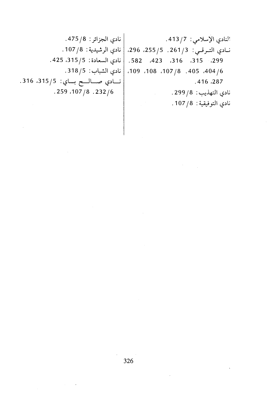 نادي الترقي: 3/ 261، 5/ 255، 296، 299، 315، 316، 423، 582، 6/ 404، 405، 8/ 107، 108، 109، 287، 416،