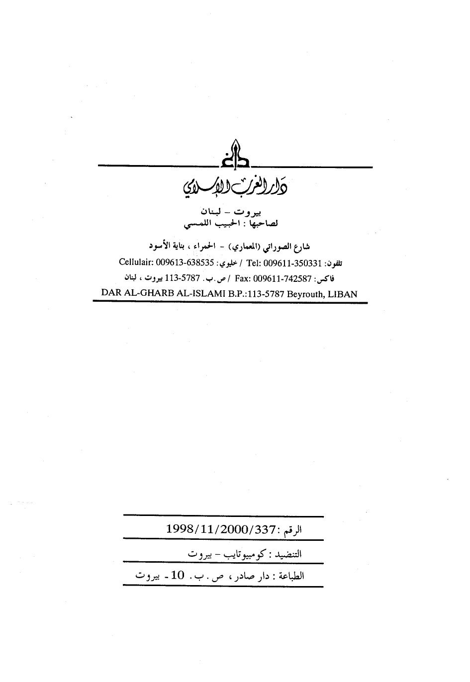 DAR AL - GHARB AL - ISLAMI B.P.: 113 - 5787 Beyrouth, LIBAN