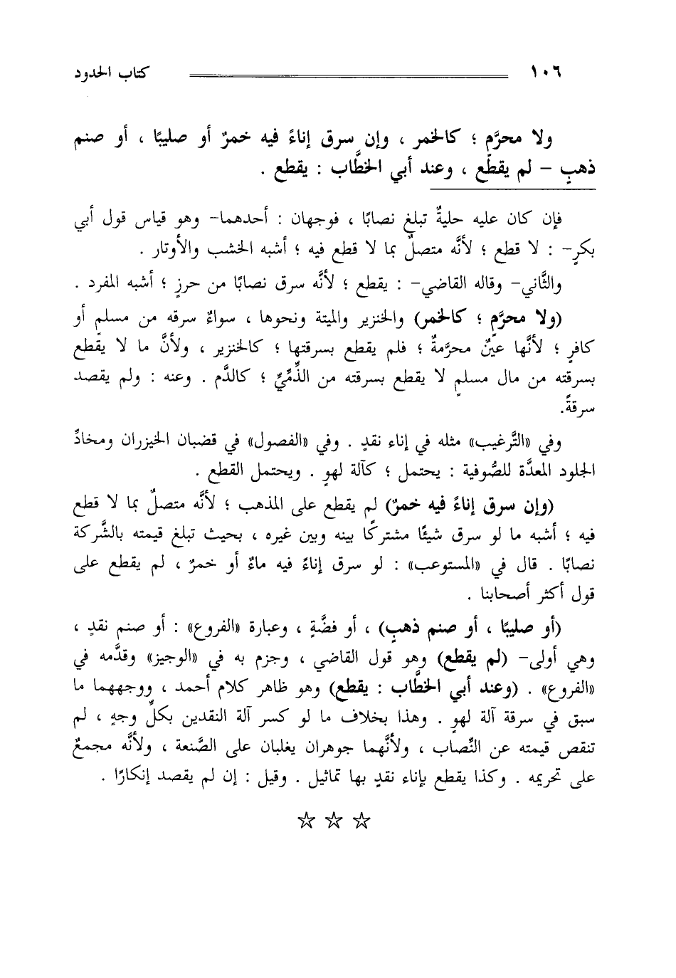 "ولا محرم كالخمر" والخنزير والميتة ونحوها سواء سرقه من مسلم أو كافر لأنها عين محرمة فلم يقطع بسرقتها كالخنزير ولأن ما لا يقطع بسرقته من مال مسلم لا يقطع بسرقته من الذمي كالدم وعنه ولم يقصد سرقة.