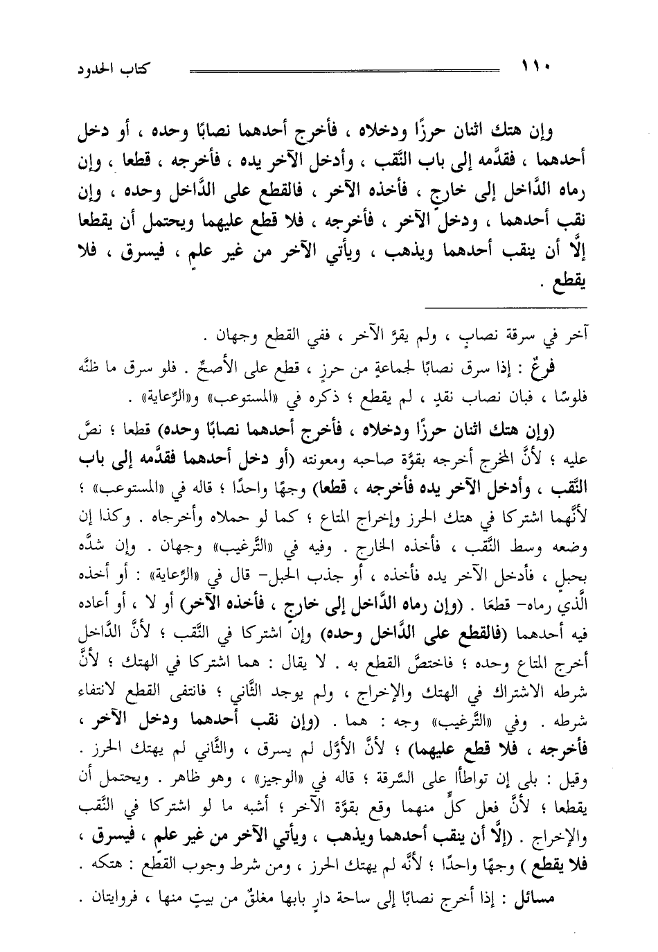 فرع: إذا سرق نصابا لجماعة من حرز قطع على الأصح فلو سرق ما ظنه فلوسا فبان نصاب نقد لم يقطع ذكره في المستوعب والرعاية "وإن هتك اثنان حرزا ودخلاه فأخرج أحدهما نصابا وحده" قطعا نص عليه لأن المخرج أخرجه بقوة صاحبه ومعونته "أو دخل أحدهما فقدمه إلى باب النقب وأدخل الآخر يده فأخرجه قطعا" وجها واحدا قاله في المستوعب لأنهما اشتركا في هتك الحرز وإخراج المتاع كما لو حملاه وأخرجاه وكذا إن وضعه وسط النقب فأخذه الخارج وفيه في الترغيب وجهان وإن شده بحبل فأدخل الآخر يده فأخذه أو جذب الحبل قال في الرعاية أو أخذه الذي رماه قطعا "وإن رماه الداخل إلى خارج فأخذه الآخر" أو لا أو أعاده فيه أحدهما "فالقطع على الداخل وحده" وإن اشتركا في النقب لأن الداخل أخرج المتاع وحده فاختص القطع به لا يقال هما اشتركا في الهتك لأن شرطه الاشتراك في الهتك والإخراج ولم يوجد الثاني فانتفى القطع لانتفاء شرطه وفي الترغيب وجه هما "وإن نقب أحدهما ودخل الآخر فأخرجه فلا قطع عليهما" لأن الأول لم يسرق والثاني لم يهتك الحرز وقيل بلى إن تواطآ على السرقة قاله في الوجيز وهو ظاهر ويحتمل أن يقطعا لأن فعل كل منهما وقع بقوة الآخر أشبه ما لو اشتركا في النقب والإخراج "إلا أن ينقب أحدهما ويذهب ويأتي الآخر من غير علم فيسرق فلا يقطع" وجها واحدا لأنه لم يهتك الحرز ومن شرط وجوب القطع هتكه.