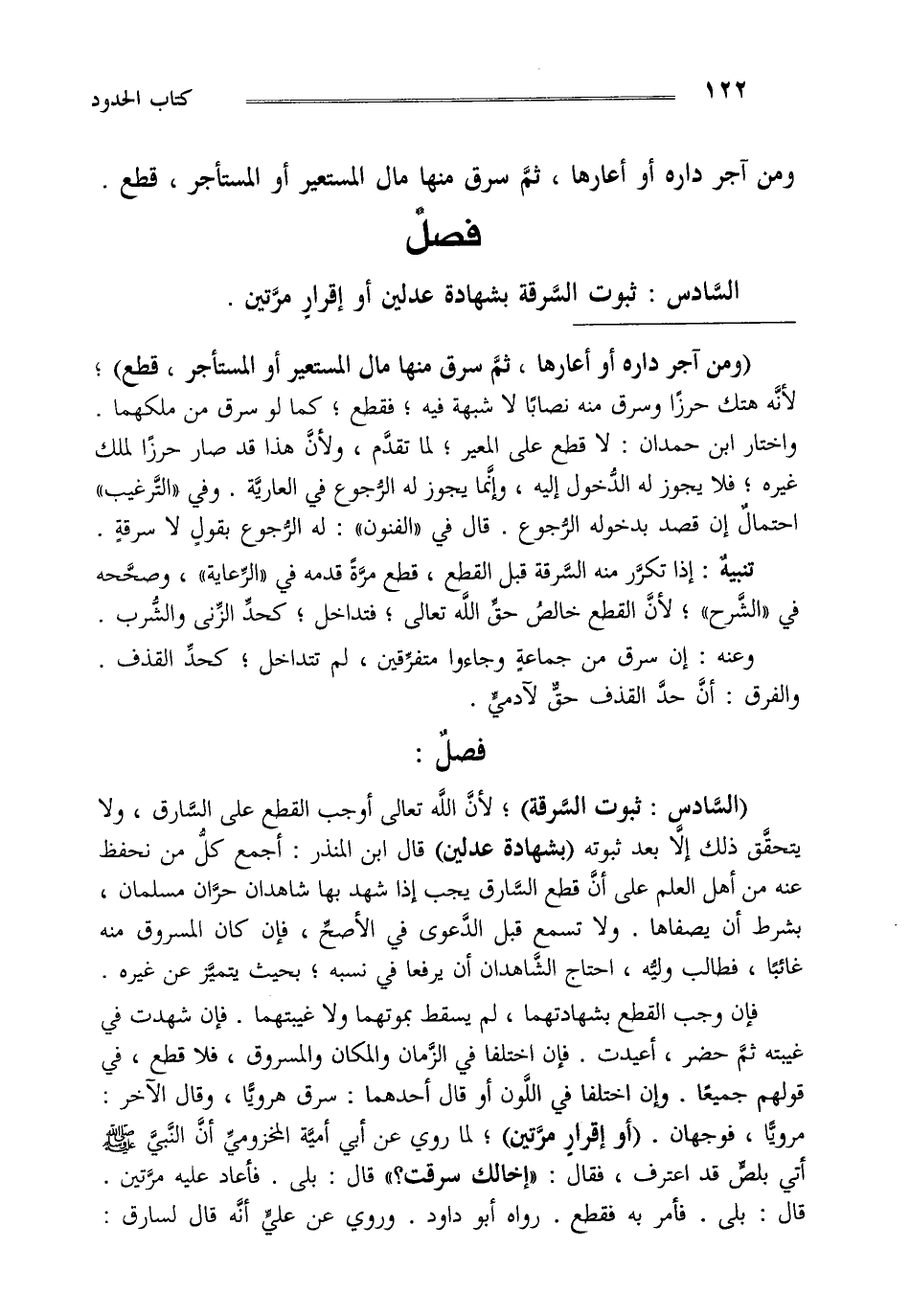 السادس: ثبوت السرقة بشهادة عدلين أو إقرار مرتين