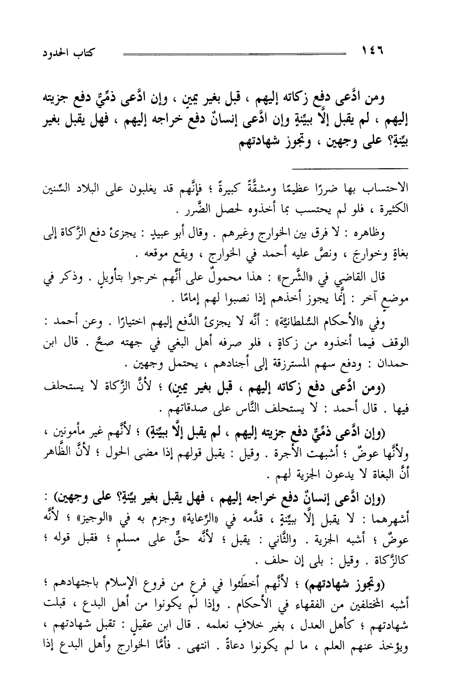 ومن ادعى دفع زكاته إليهم قبل بغير يمين وإن ادعى ذمي دفع جزيته إليهم لم يقبل إلا ببينة وإن ادعى إنسان دفع خراجه إليهم فهل يقبل بغير بينة على وجهين وتجوز شهادتهم