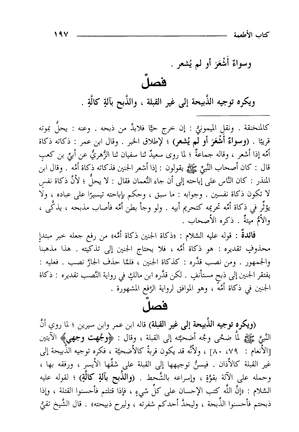 كالمنخنقة ونقل الميموني إن خرج حيا فلابد من ذبحه وعنه يحل بموته قريبا "وسواء أشعر أو لم يشعر" لإطلاق الخبر وقال ابن عمر ذكاته ذكاة أمه إذا أشعر وقاله جماعة لما روى سعيد ثنا سفيان ثنا الزهري عن أبي بن كعب قال كان أصحاب النبي صلى الله عليه وسلم يقولون إذا أشعر الجنين فذكاته ذكاة أمه وقال ابن المنذر كان الناس على إباحته إلى أن جاء النعمان فقال لا يحل لأن ذكاة نفس لا تكون ذكاة نفسين وجوابه ما سبق وحكم بإباحته تيسيرا على عباده ولا يؤثر في ذكاة أمه تحريمه كتحريم أبيه ولو وجأ بطن أمه فأصاب مذبحه يذكى والأم ميتة ذكره الأصحاب