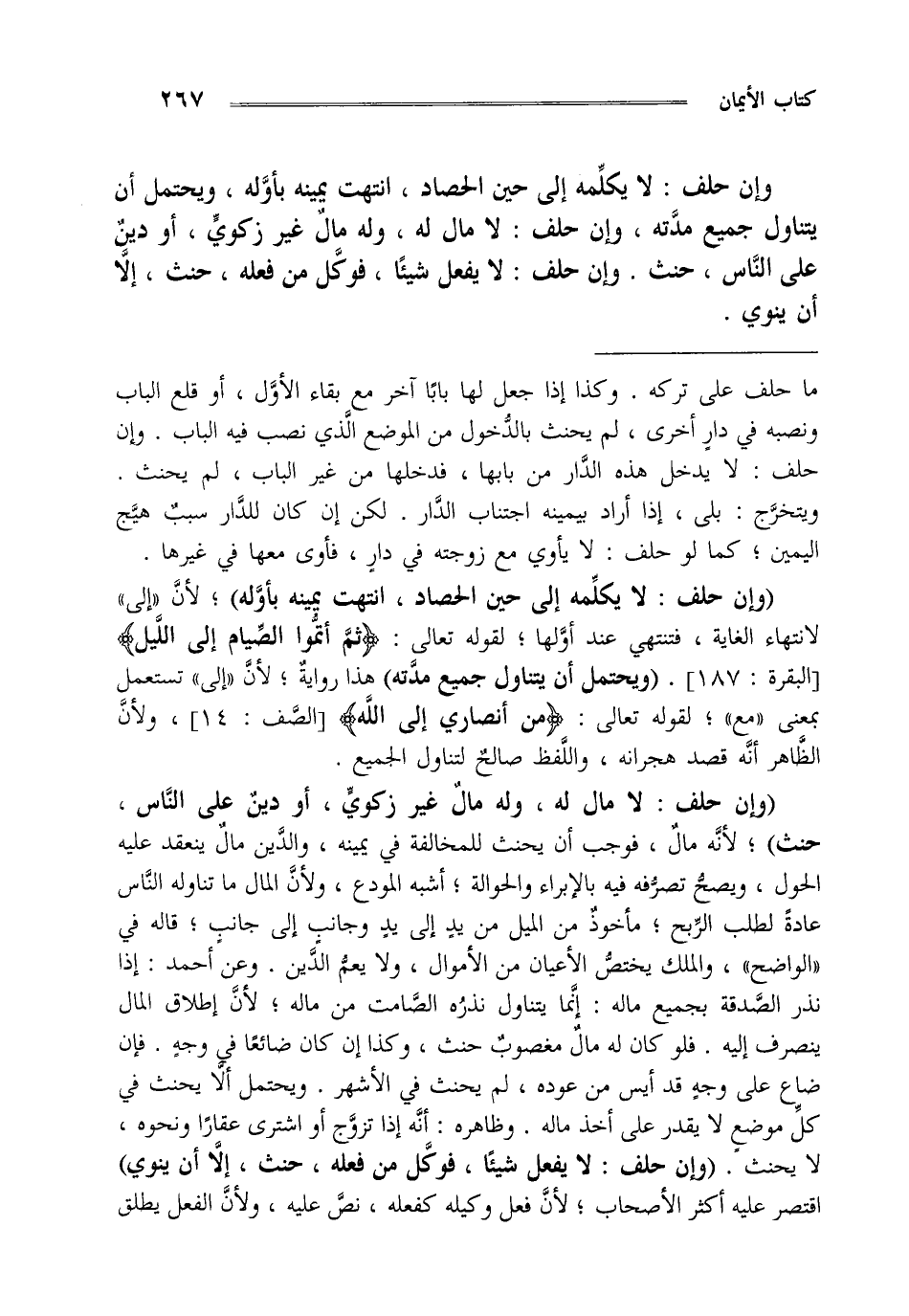 "وإن حلف لا يكلمه إلى حين الحصاد انتهت يمينه بأوله" لأن إلى لانتهاء الغاية فتنتهي عند أولها لقوله تعالى {ثُمَّ أَتِمُّوا الصِّيَامَ إِلَى اللَّيْلِ} [البقرة: 187] "ويحتمل أن يتناول جميع مدته" هذا رواية لأن إلى تستعمل بمعنى مع لقوله تعالى {مَنْ أَنْصَارِي إِلَى اللَّهِ} [الصف: 14] ولأن الظاهر أنه قصد هجرانه واللفظ صالح لتناول الجميع.