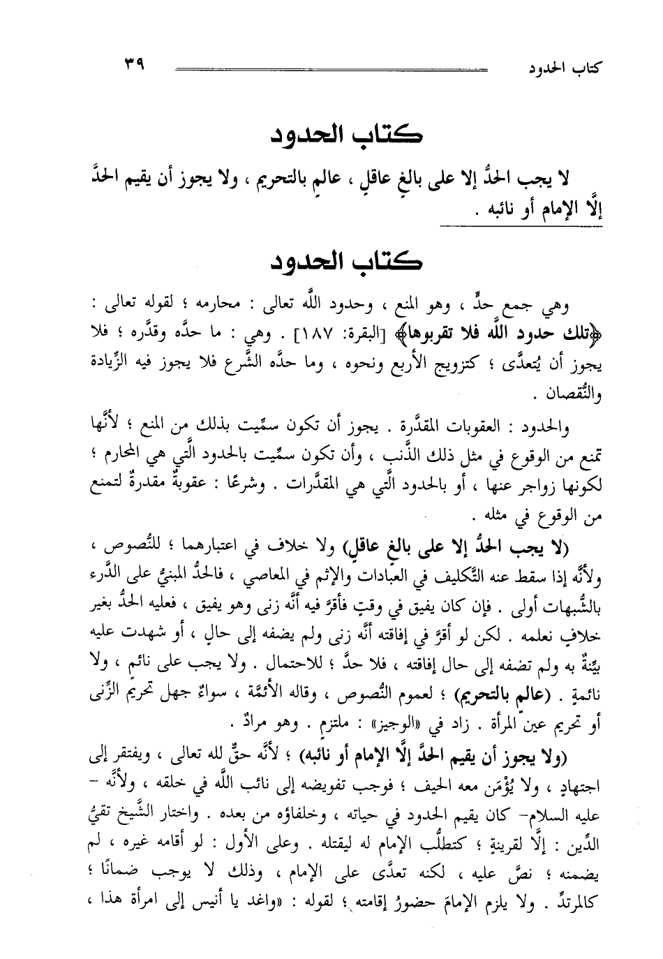 لا يجب الحد إلا على بالغ عاقل عالم بالتحريم، ولا يجوز أن يقيم الحد إلا الإمام أو نائبه