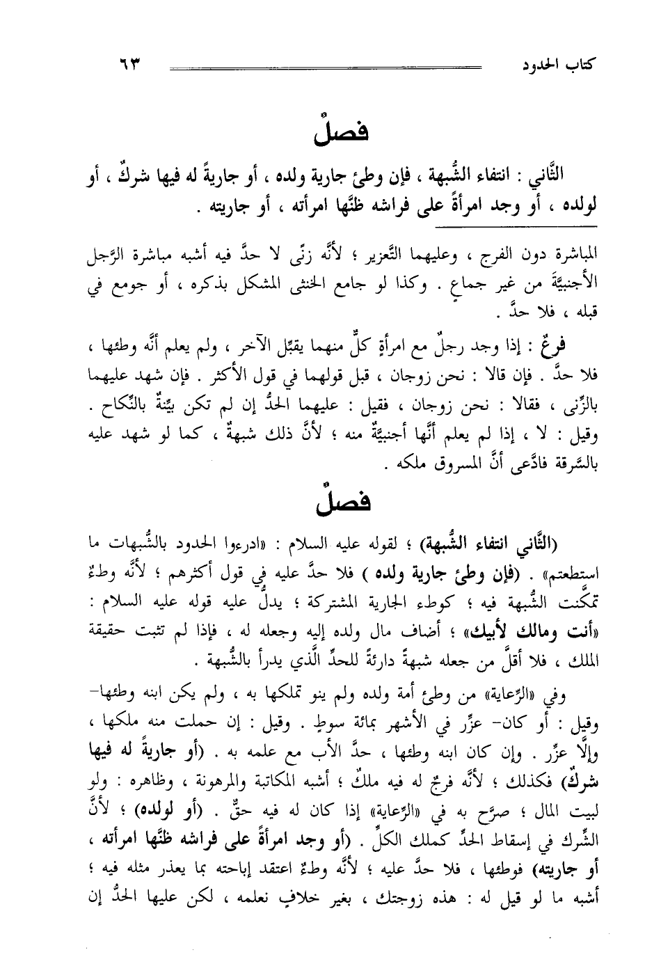 الثاني: انتفاء الشبهة فإن وطئ جارية ولده أو جارية له فيها شرك أو لولده أو وجد امرأة على فراشه ظنها امرأته,أو جاريته.