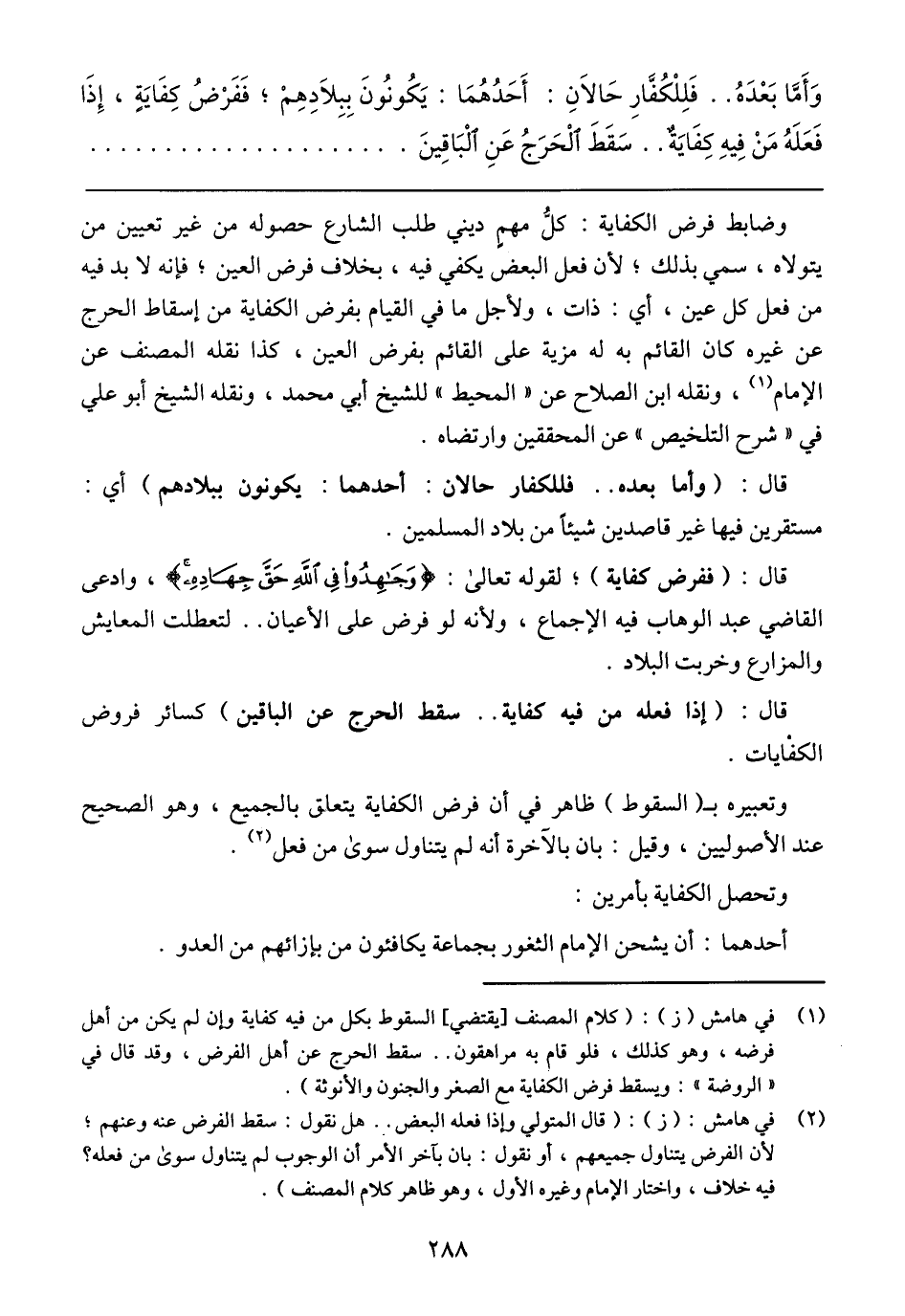 وتعبيره بـ) السقوط) ظاهر في أن فرض الكفاية يتعلق بالجميع, وهو الصحيح عند الأصوليين, وقيل: بان بالآخرة أنه لم يتناول سوى من فعل.