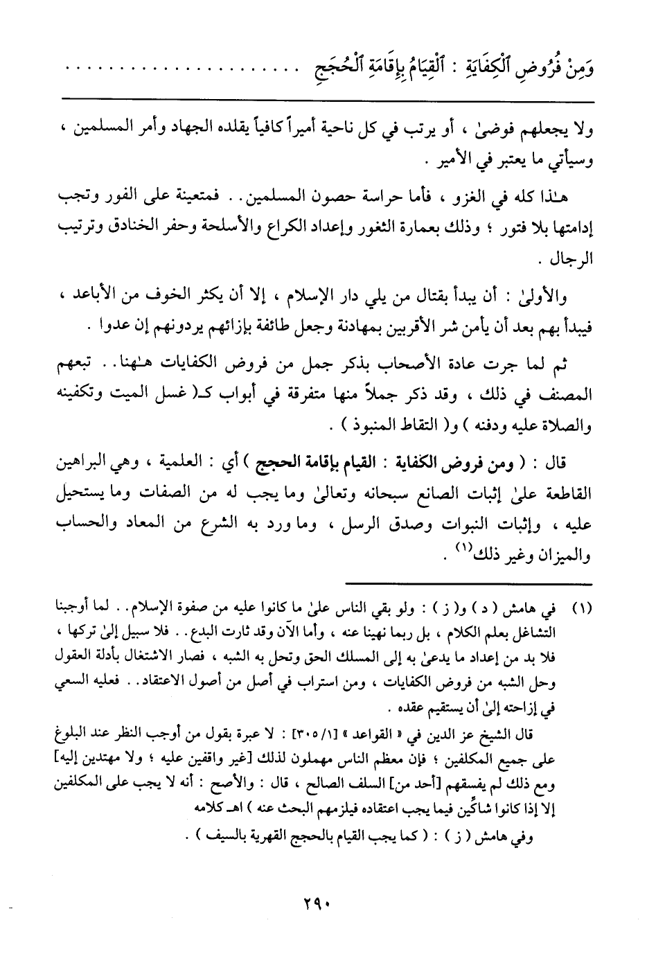 وَمِنْ فُرُوضِ الْكِفَايَةِ: الْقِيَامُ بِإِقَامَةِ الْحُجَجِ