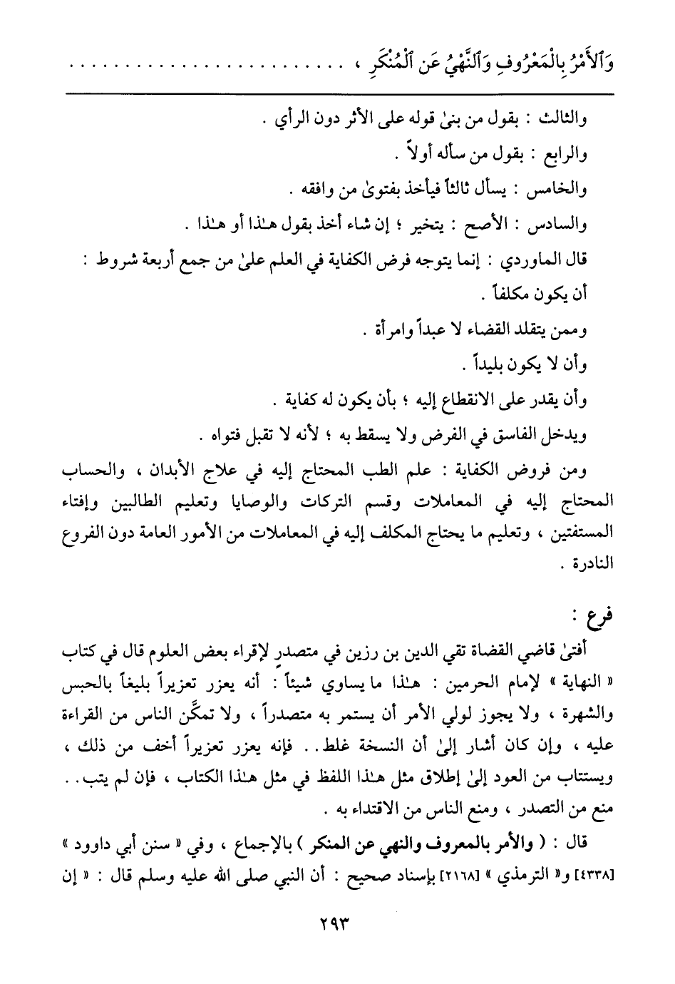 قال: (والأمر بالمعروف والنهي عن المنكر) بالإجماع, وفي (سنن أبي داوود) [4338] و (الترمذي) [2168] بإسناد صحيح: أن النبي صلى الله عليه وسلم قال: (إن