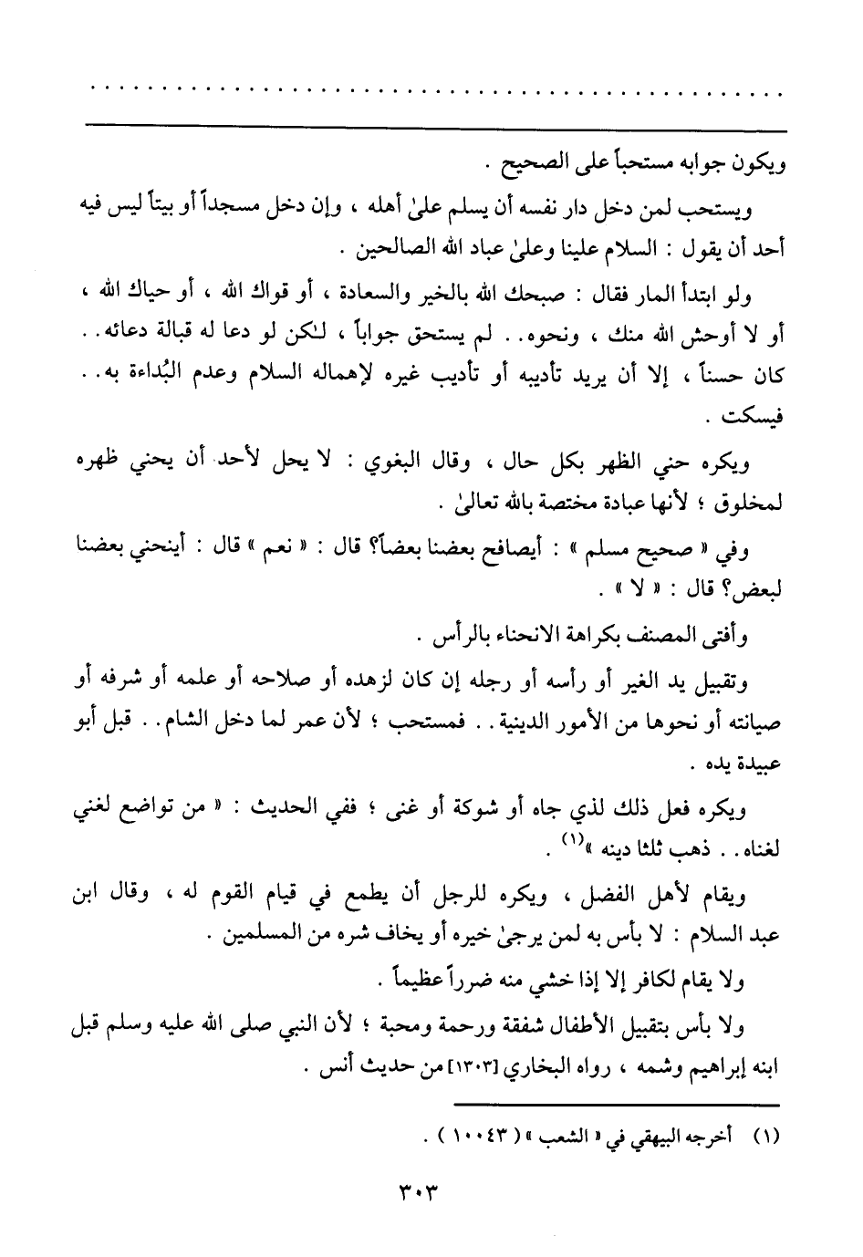 وفي (صحيح مسلم) أيصافح بعضنا بعضًا؛ قال: (نعم) قال: أينحني بعضنا لبعض؟ قال: (لا).