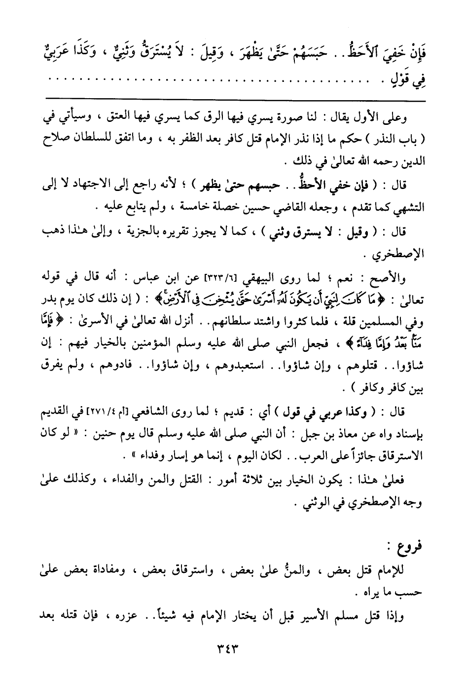 للإمام قتل بعض، والمن على بعض، واسترقاق بعض، ومفاداة بعض على حسب ما يراه.