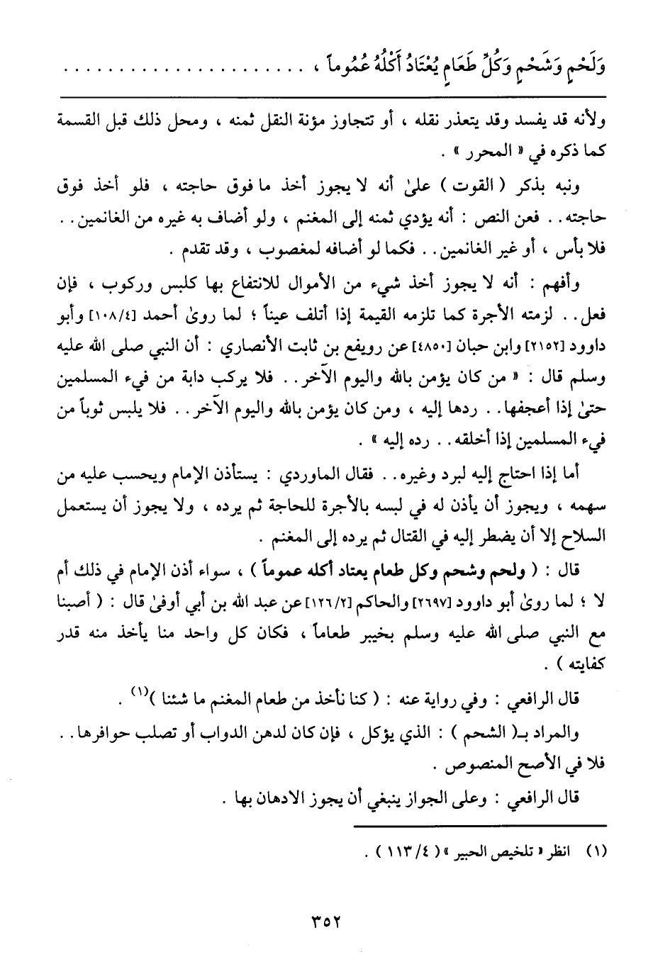 قال الرافعي: وفي رواية عنه: (كنا نأخذ من طعام المغنم ما شئنا).