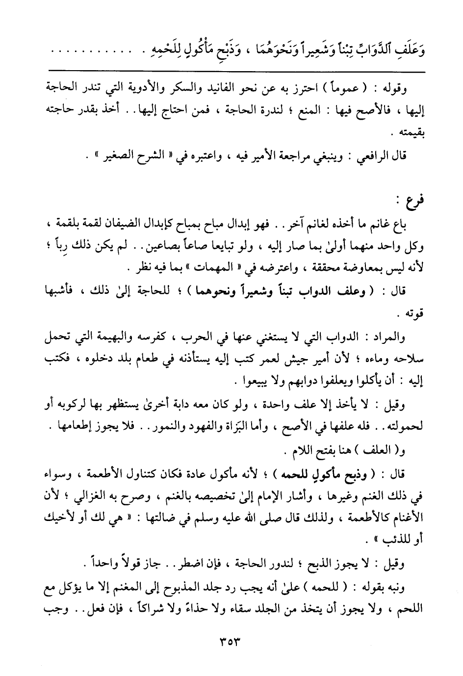 والمراد: الدواب التي لا يستغني عنها في الحرب، كفرسه والبهيمة التي تحمل سلاحه وماءه؛ لأن أمير جيس لعمر كتب إليه يستأذنه في طعام بلد دخلوه، فكتب إليه: أن يأكلوا ويعلفوا دوابهم ولا يبيعوا.