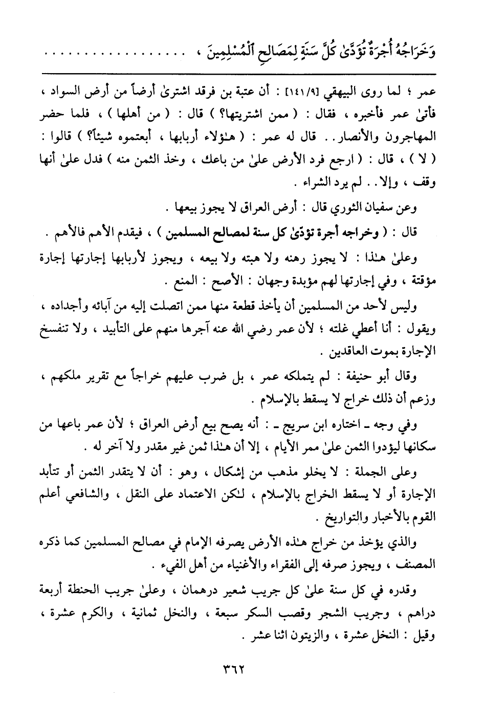 وَخَرَاجُهُ أُجْرَةٌ تُؤَدَّى كُلَّ سَنَةٍ لِمَصَالِحِ الْمُسْلِمِينَ،