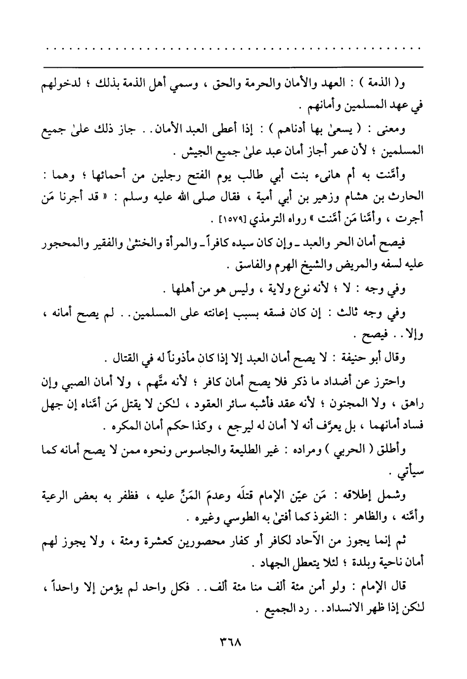 ومعنى: (يسعى بها أدناهم) إذا أعطى العبد الأمان .. جاز ذلك على جميع المسلمين؛ لأن عمر أجاز أمان عبد على جميع الجيش.