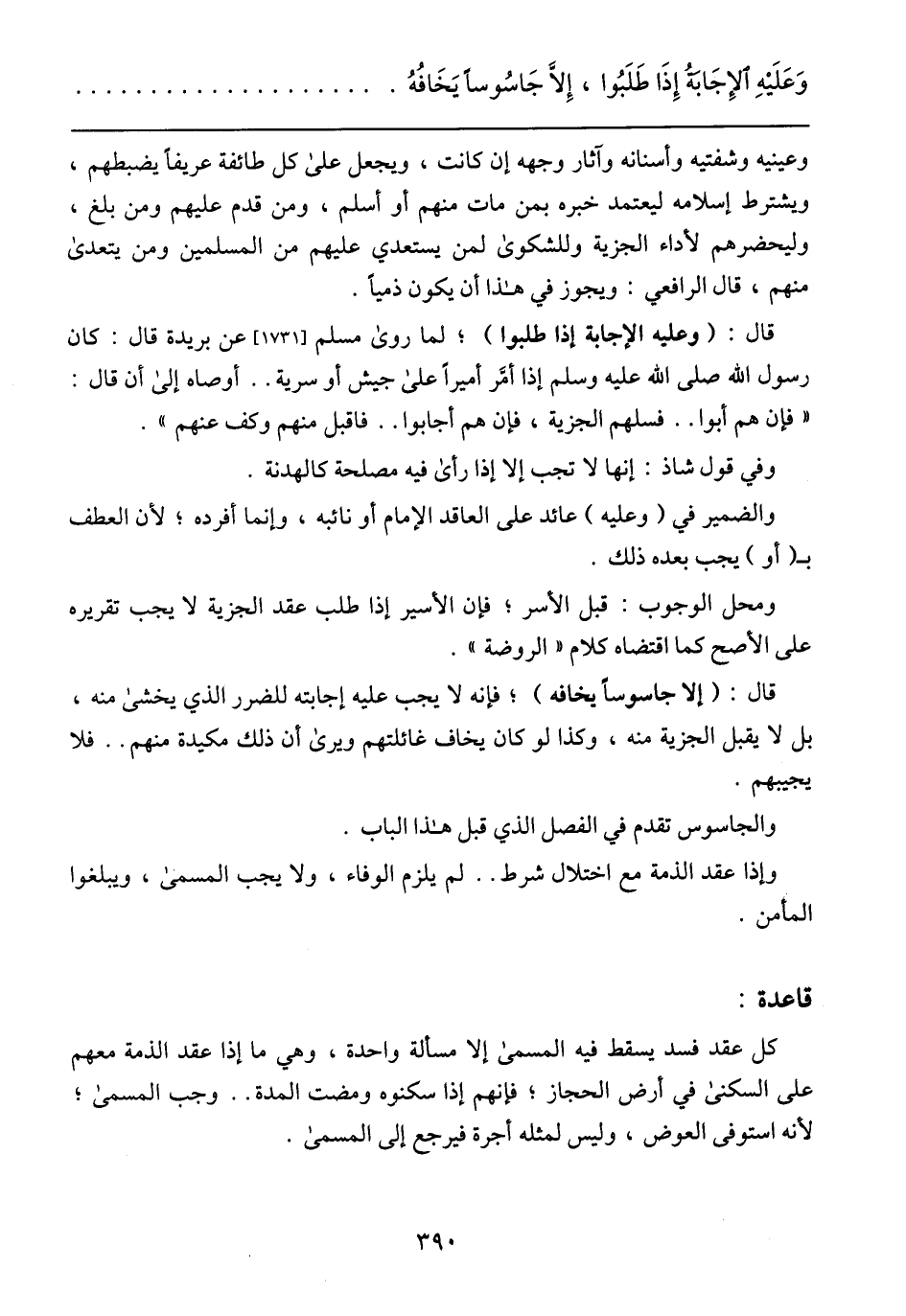 قال: (وعليه الإجابة إذا طلبوا)؛ لما روى مسلم [1731] عن بريدة قال: كان رسول الله صلى الله عليه وسلم إذا أمَّر أميرًا على جيش أو سرية .. أوصاه إلى أن قال: (فإن هم أبوا .. فسلهم الجزية، فإن هم أجابوا .. فاقبل منهم وكف عنهم).