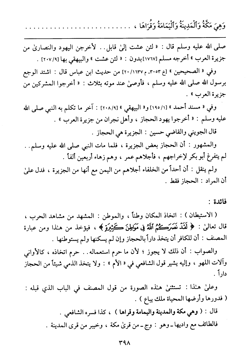 قال الجويني والقاضي حسين: الجزيرة هى الحجاز.